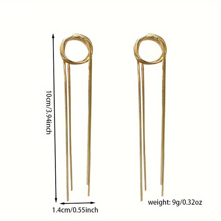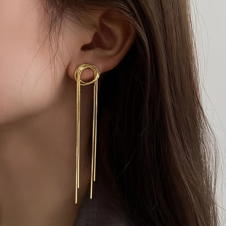 - تعرض أقراط تصميم شرابة المعادن الذهبية هذه أسلوبًا قانونيًا وبسيطًا ، مما يجعلها مثالية للأفراد الذين يتقدمون للأزياء الذين يقدرون الأناقة الخالدة.