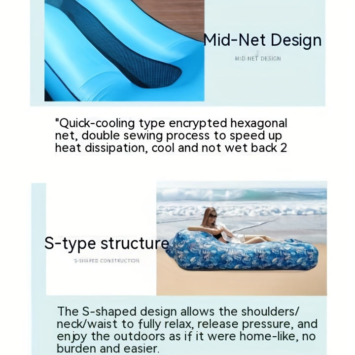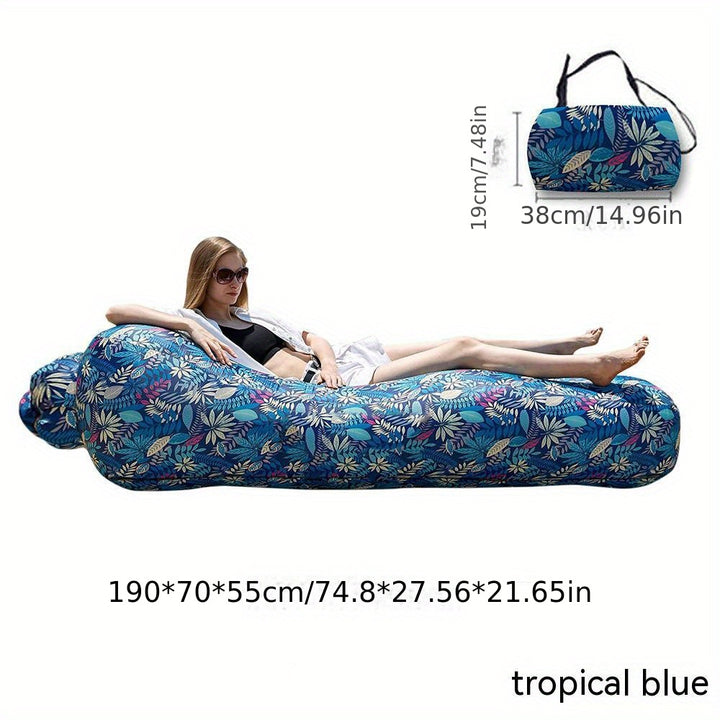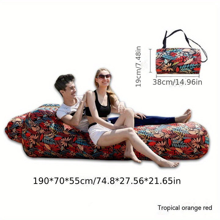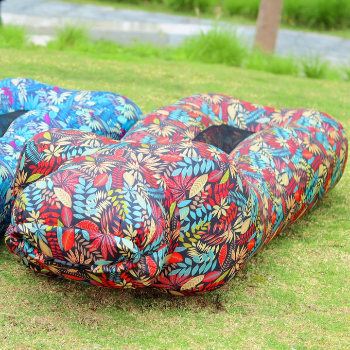 - أريكة قابلة للنفخ مطبوعة بأوراق الشجر مثالية للشاطئ والتخييم.