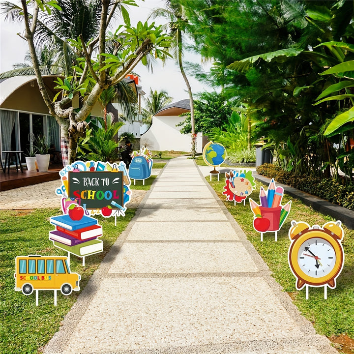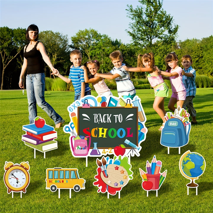 العودة إلى علامات ساحة المدرسة ، 8pcs ، الزخارف في الهواء الطلق - tjrexrj