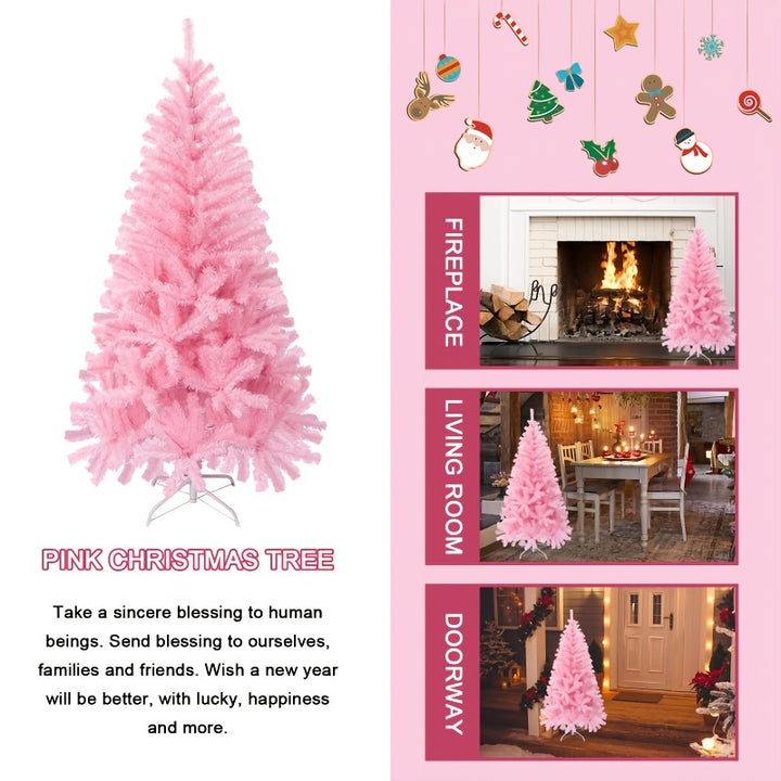 شجرة صنوبر عيد الميلاد المضيئة باللون الوردي الاصطناعي سهلة التجميع للاستخدام الداخلي والخارجي