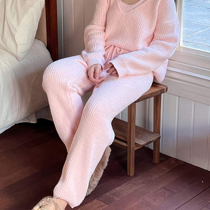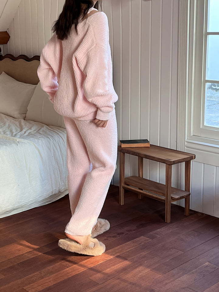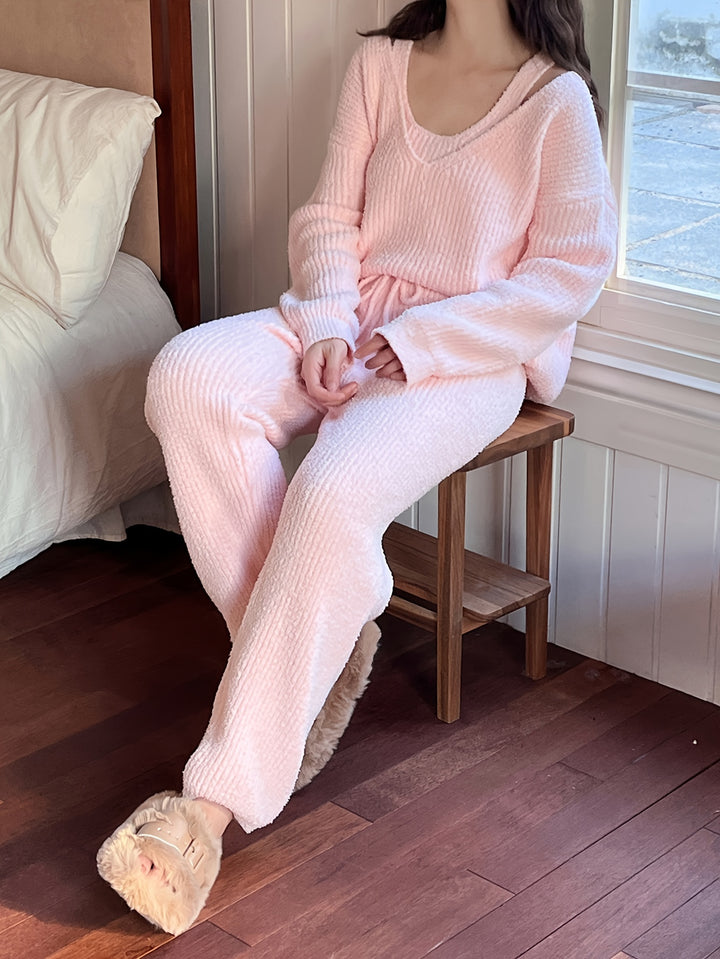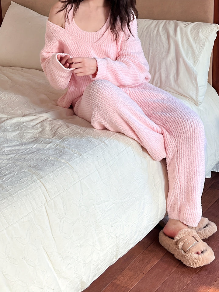 باجاما مضلعة غير رسمية وضعت الأكمام الطويلة فضفاضة سراويل أعلى سراويل للسيدات G437