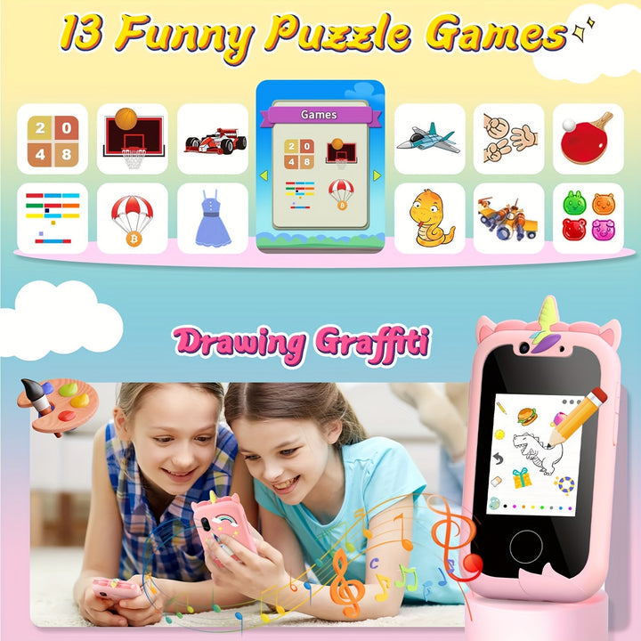 Portable Learning Mobile Phone Toys Childrens Smart Camera Toys For Girls Toddler Music Player With Dual Cameras Game Alarm Clock And Other Functions Backtoschool Season Birthday Gifts For Girls And Boys