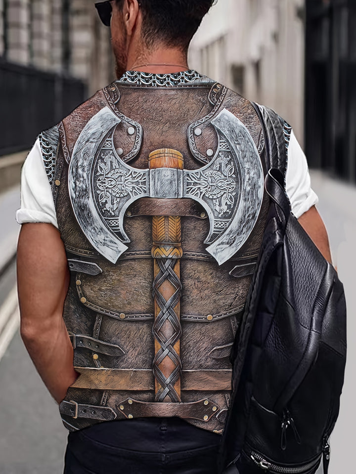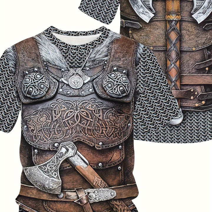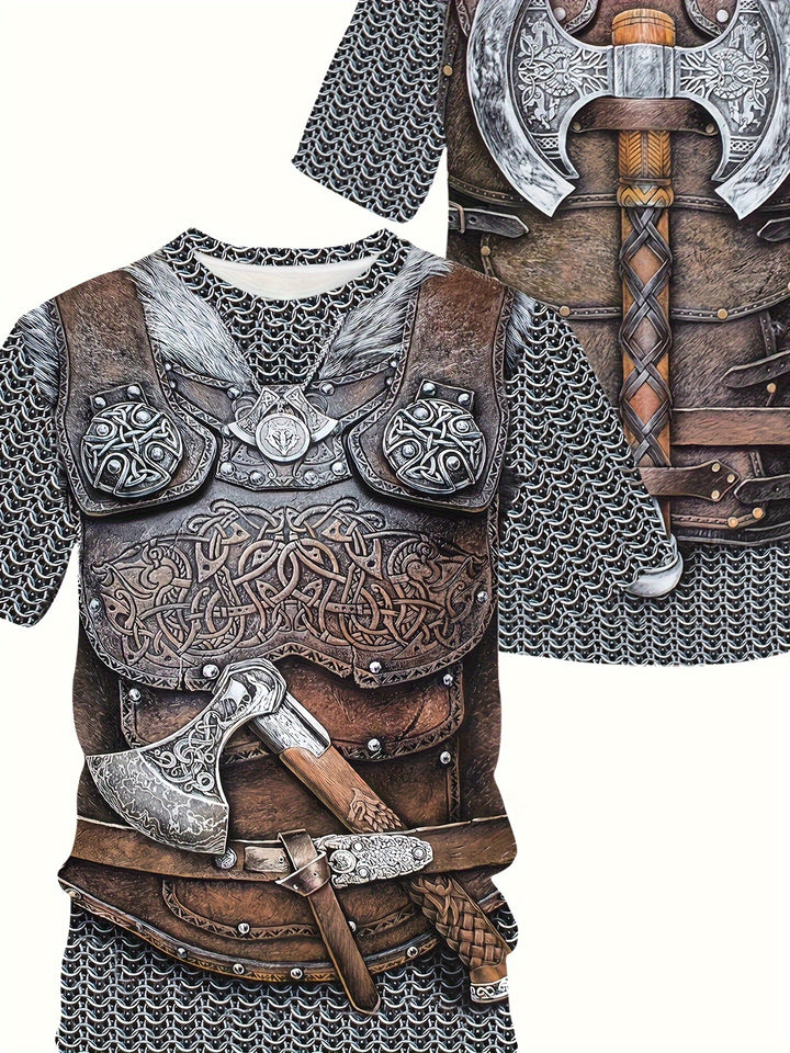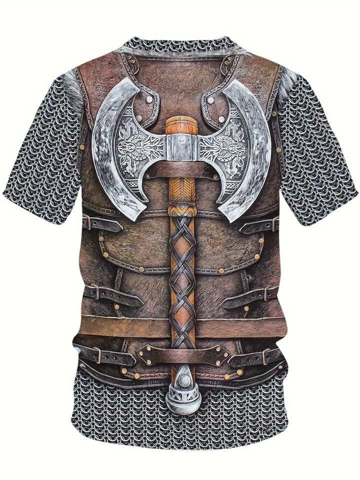 تي شيرت درع القديم ثلاثي الأبعاد للرجال: فأس الرسوم ، رقبة الطاقم ، كم قصير - tjrlarm6