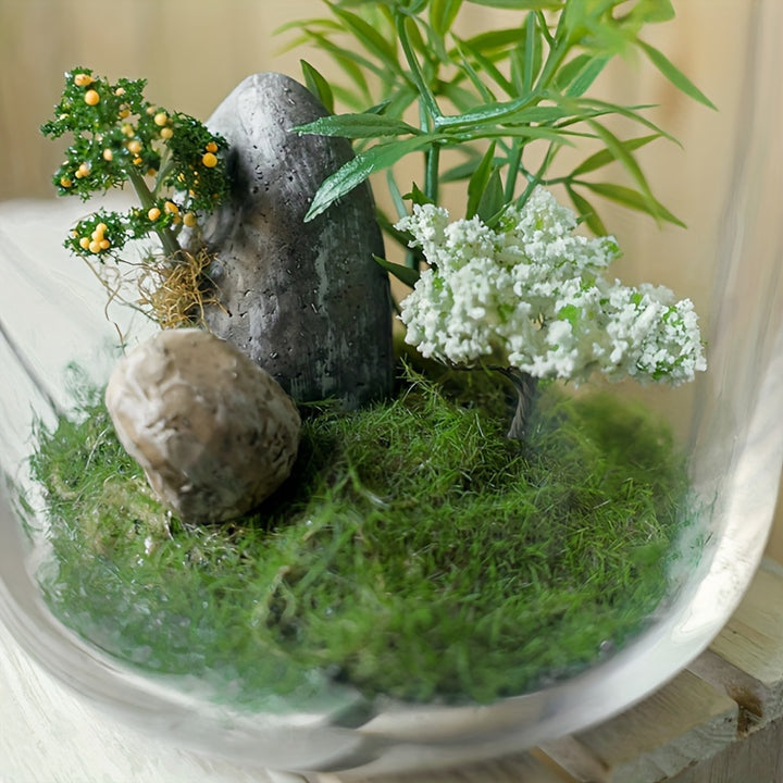 • نباتات صناعية صغيرة بوعاء شجرة البرتقال وشجرة الكمثرى وزجاجة زجاجية