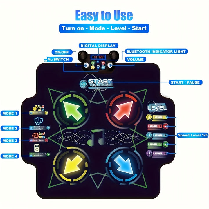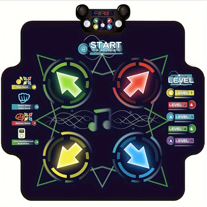 موسيقى مدمجة مع 5 مستويات: مع نظام موسيقى مدمج، توفر سجادة الرقص هذه مجموعة متنوعة من الألحان للرقص عليها. يأتي مع 5 مستويات من الموسيقى تلبي التفضيلات ومستويات المهارة المختلفة. من الألحان المبهجة إلى الألحان البطيئة، هناك ما يناسب الجميع.