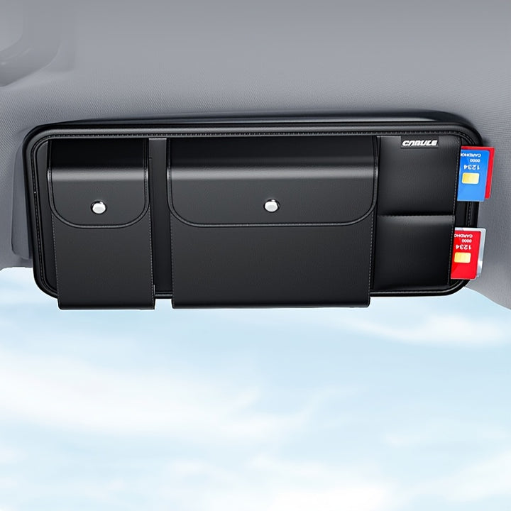 - التخزين المريح: توفر حقيبة تخزين Pu Leather Sun Visor حلاً عمليًا للحفاظ على تنظيم سيارتك الداخلية. يحتوي على العديد من الجيوب التي توفر مساحة كبيرة لتخزين العناصر المختلفة مثل المستندات والبطاقات والنظارات الشمسية والأقلام والمزيد.