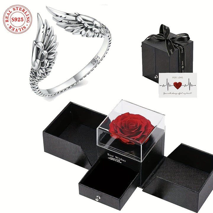 حلقة جناح قابلة للتعديل أنيقة مع مربع هدايا روز متميز -xmb8