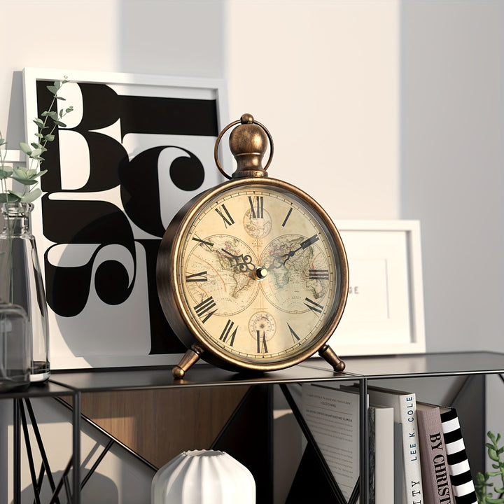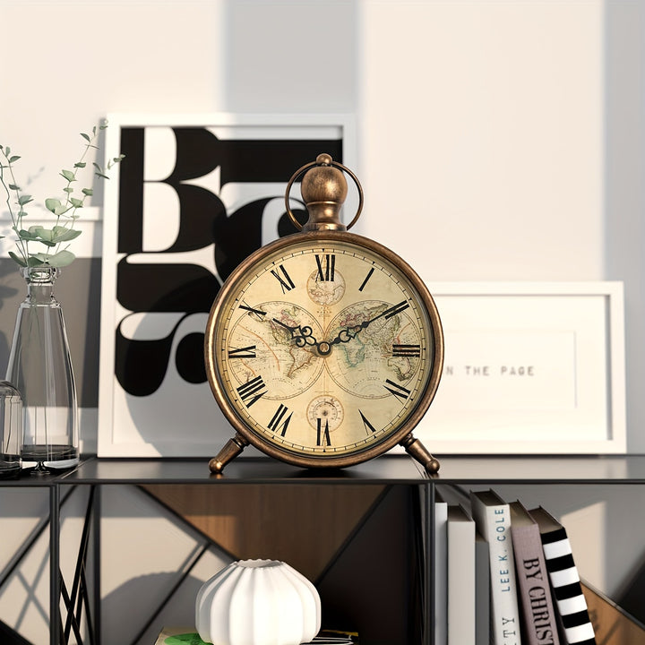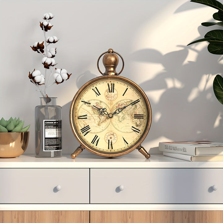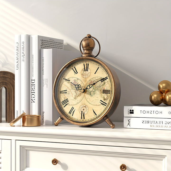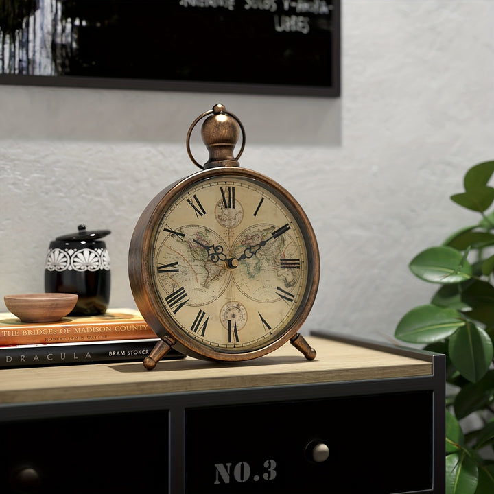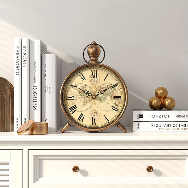 تصميم فريد: تتميز الساعة بتصميم خريطة عالمي في أسلوب ريفي كلاسيكي وأنيق ، مما يجعله قطعة ديكور جذابة لأي غرفة نوم أو منزل.