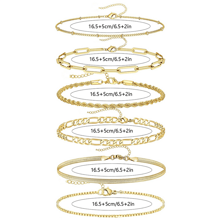 سوار سلسلة سبيكة رفيعة 6pc مجموعة بسيطة تزيين مجوهرات سلسلة اليد للنساء للنساء