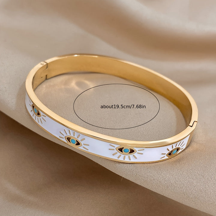 • تصميم: يتميز سوار الإسورة بنمط عيون فريد يضيف لمسة من التصوف والأناقة إلى أي جماعة. جمالية عتيقة تجعلها ملحقًا بارزًا.