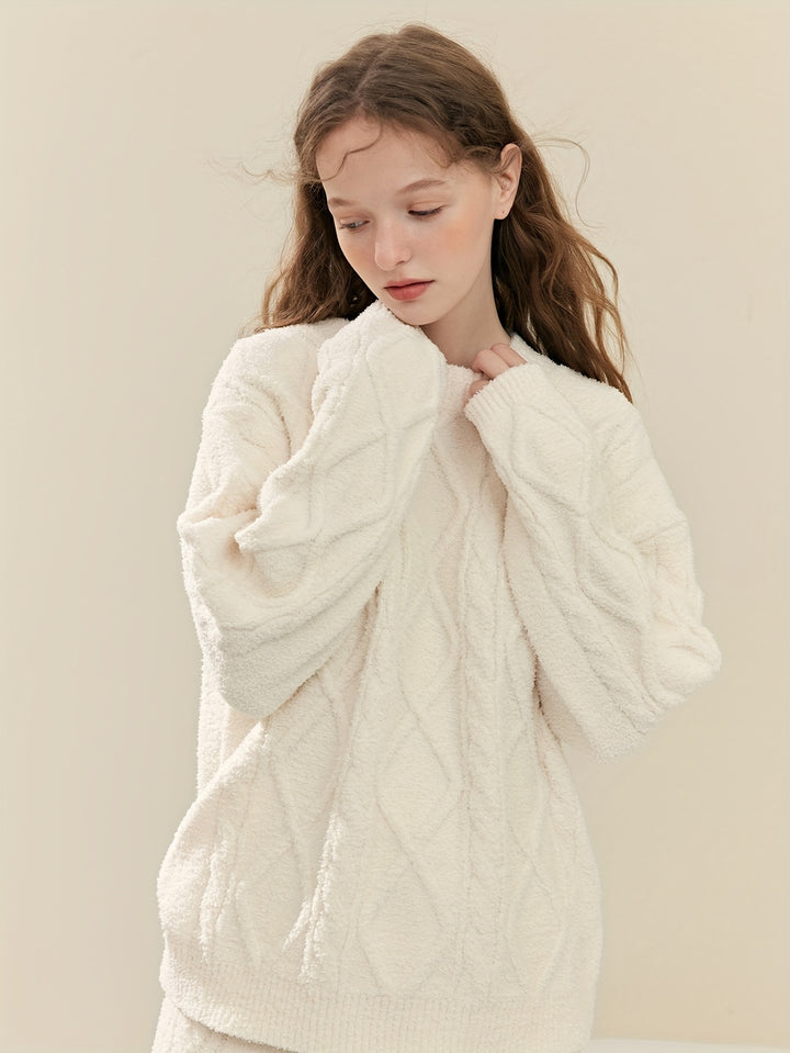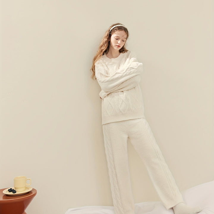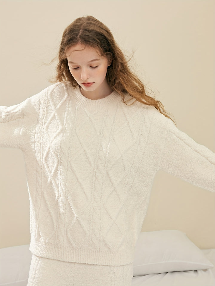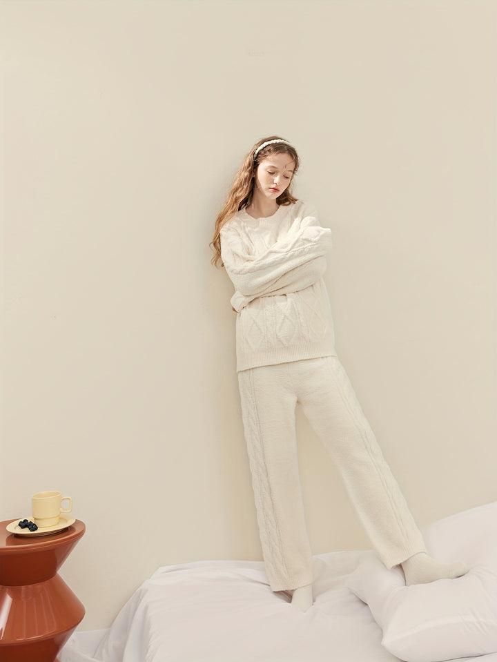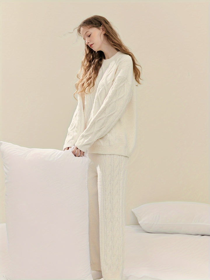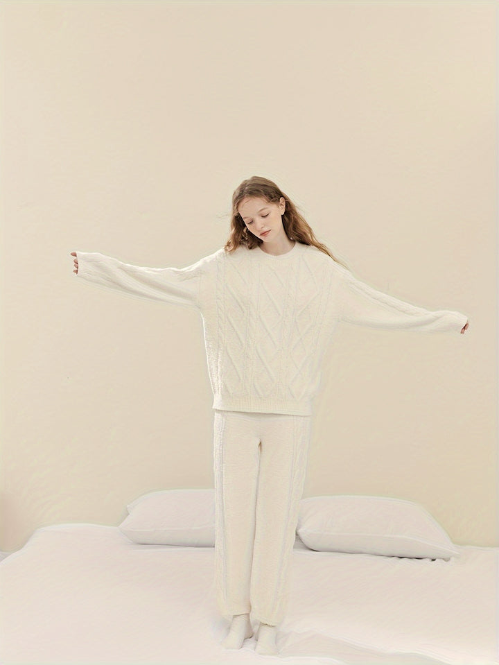 - قمة عنق الطاقم الطويلة الأكمام وسروال حزام مرن