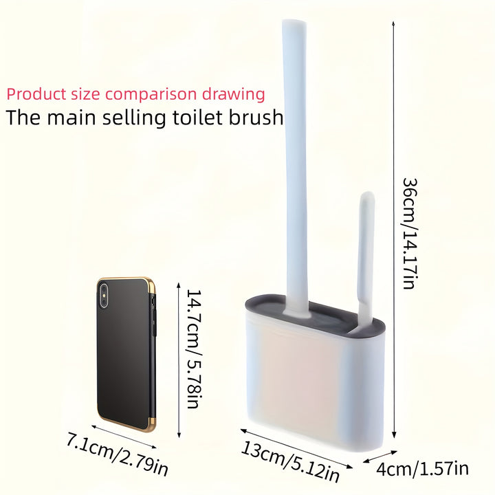1Set 2 Toilet Brushes And 1 Toilet Seat Wall Mounted Toilet Brush Silicone Soft Toilet Brush Head Long Handle Toilet Brush Multifunctional Household Brush Home Cleaning Tool Home Essential
