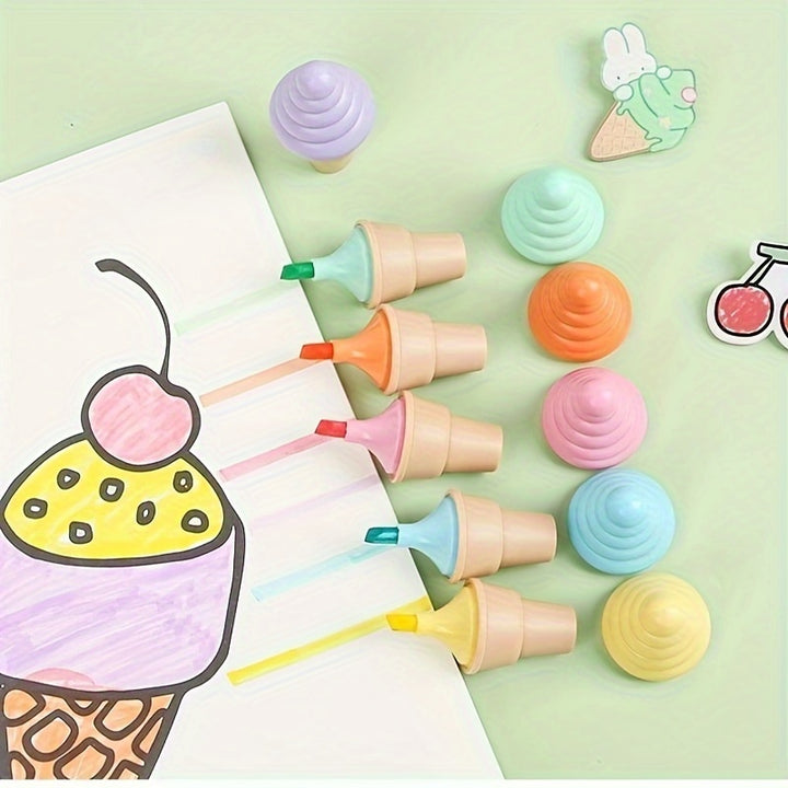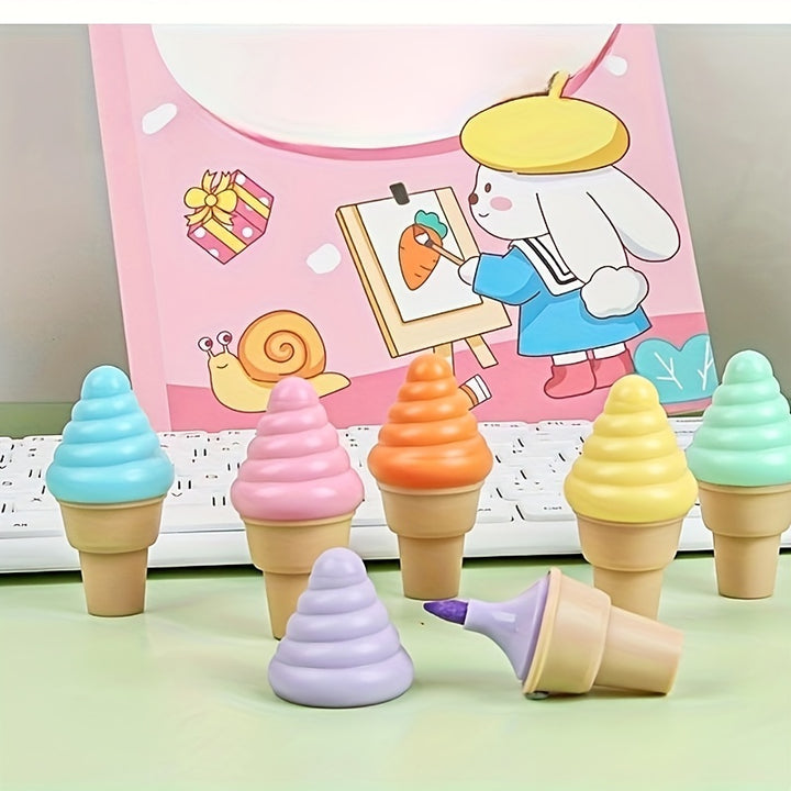 6pcs كاشفان إبداعي آيس كريم القلم الفلورسنت على شكل