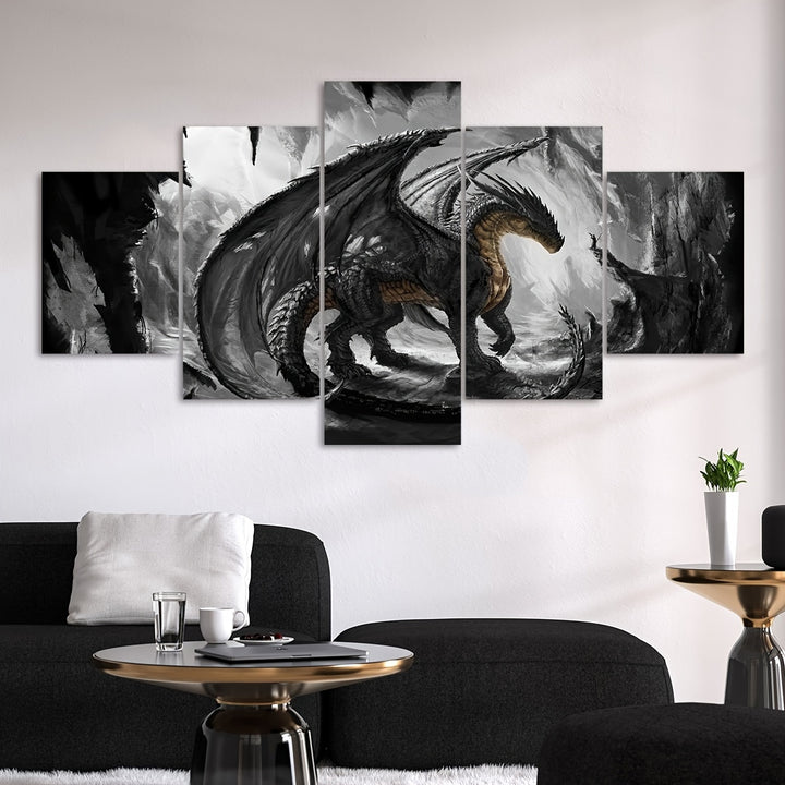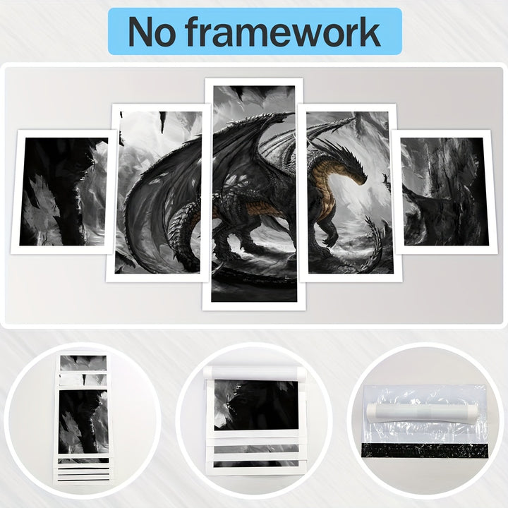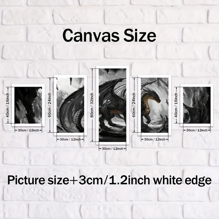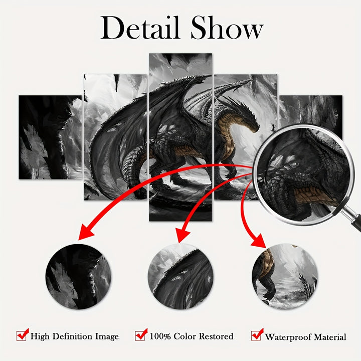 - مجموعة من 5 ملصقات قماشية تتميز بعمل فني تنين عالي الدقة