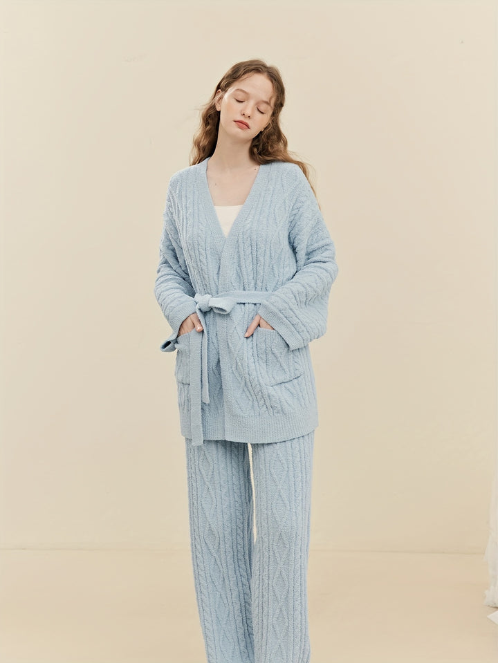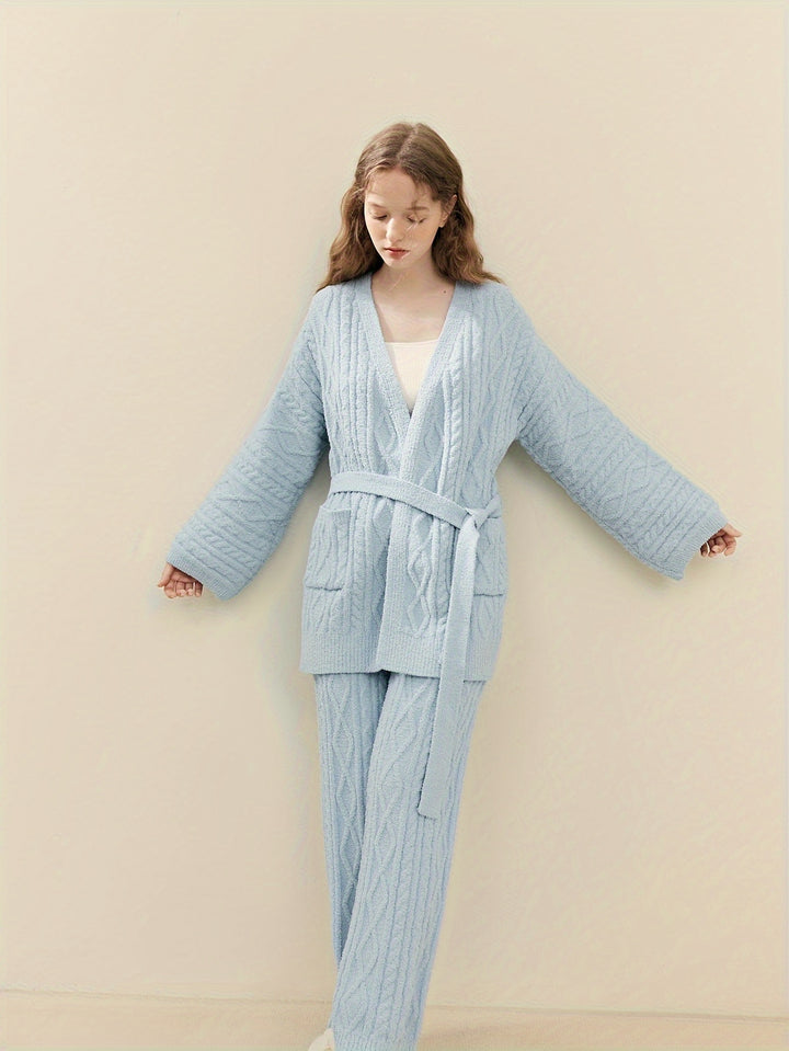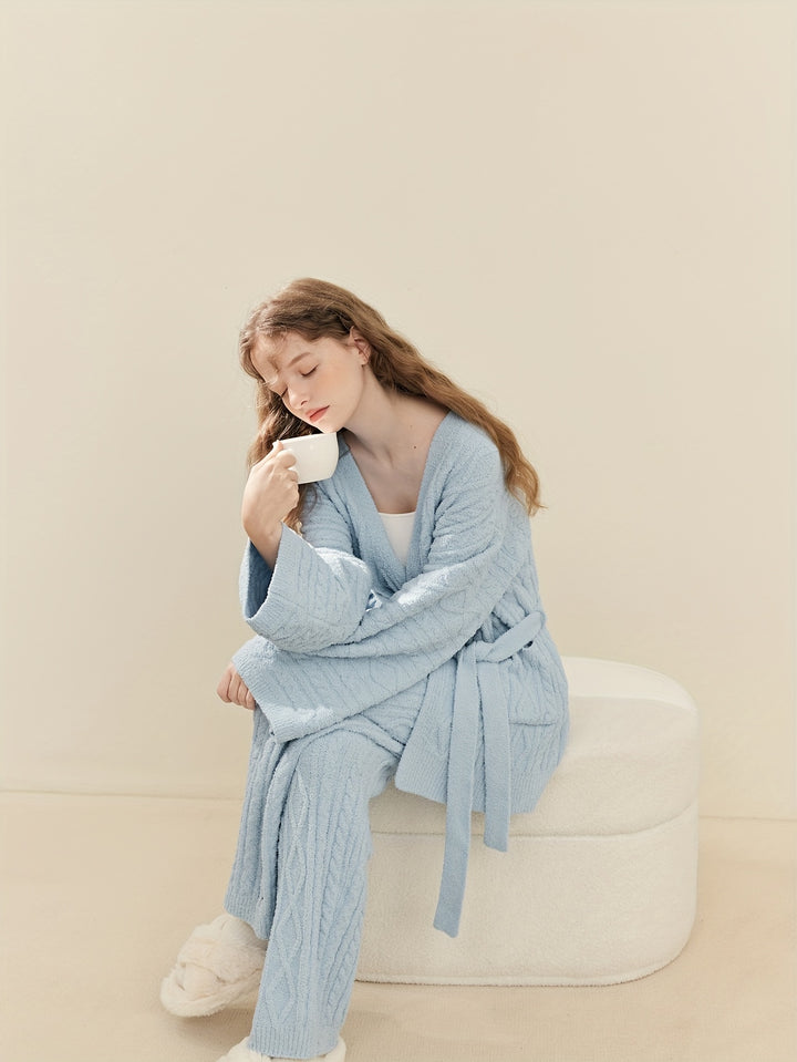- عنوان: مجموعة بيجاما Argyle ، رداء طويل الأكمام مع سروال حزام ومرنة الخصر