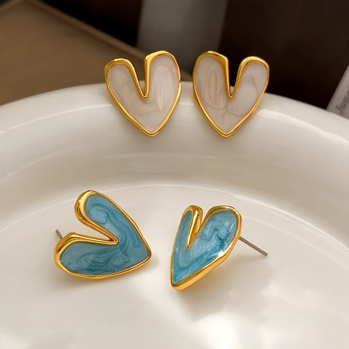 • تصميم أنيق: تتميز الأقراط بتصميم ملون قلب يضيف لمسة من السحر والتطور إلى أي جماعة.
