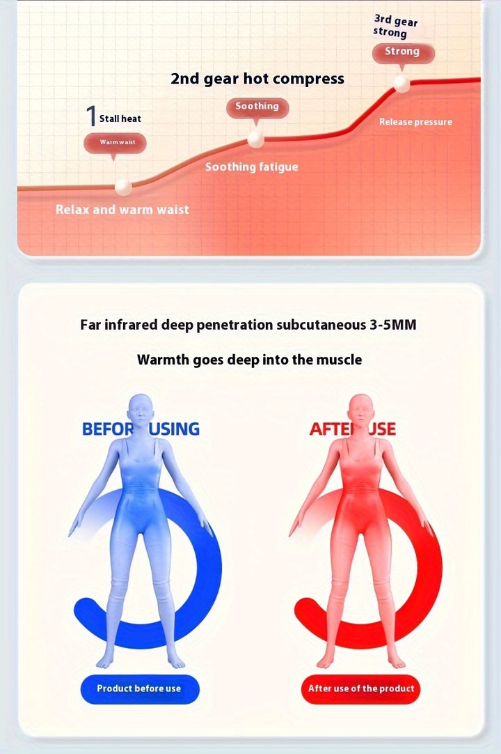 تخصيص تجربة التدليك الخاصة بك مع إعدادات التدفئة القابلة للتعديل ، مما يتيح لك اختيار المستوى المثالي من الدفء للاسترخاء والراحة الأمثل.