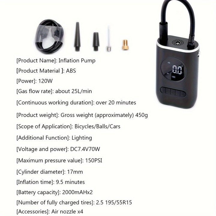 - منفاخ الإطارات ثنائي الأغراض: منفاخ الإطارات الصغير المحمول هذا مناسب للدراجات والمركبات الكهربائية والسيارات، مما يجعله أداة متعددة الاستخدامات لمختلف المركبات.