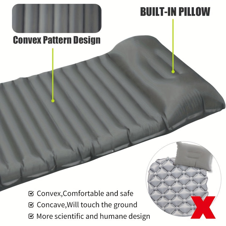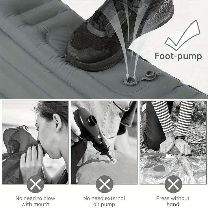 - من السهل تضخيم: لا حاجة لمزيد من الضخ أو النفخ اليدوي. تأتي وسادة النوم هذه مع مضخة مدمجة تسمح بالنفخ السريع والسهل.
