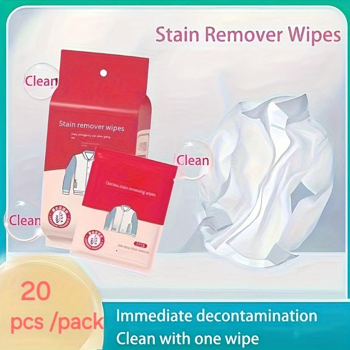 20pcs ملابس محمولة وإزالة وصمة عار المناديل الرطبة - TJR2H9p