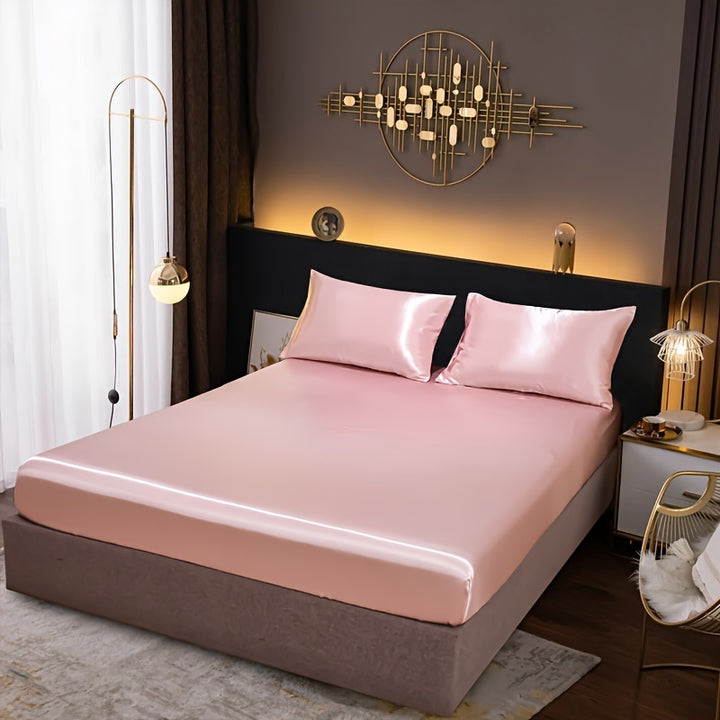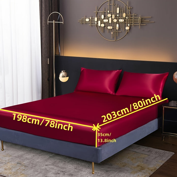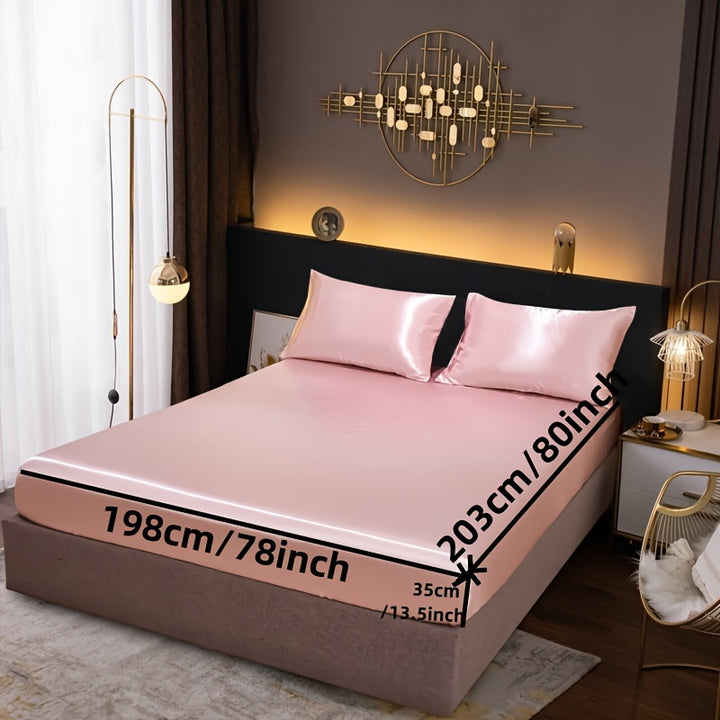 3pcs مجموعة صفيحة ساتان فاخرة ، ناعمة مريحة لذيذة من حامي مرتبة الفراش الصلبة المريحة ، لغرفة النوم ، غرفة الضيوف (1* ورقة مجهزة + 2* وسادة ، بدون جوهر) -SSP6