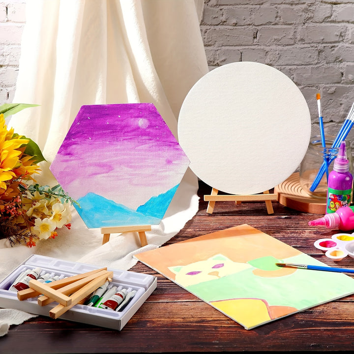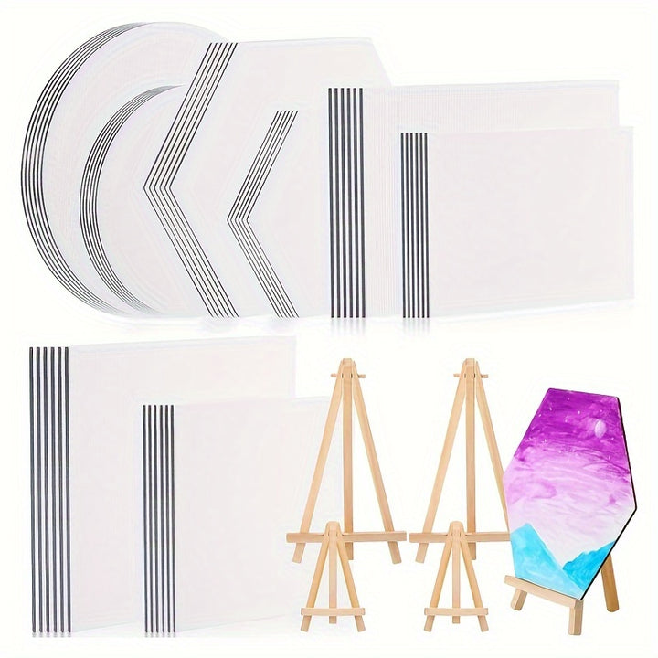 - 8 easels mini بما في ذلك: تتضمن الحزمة أيضًا 8 easels Mini ، مما يوفر سطحًا مناسبًا ومستقرًا لعرض الأعمال الفنية النهائية. من السهل تجميع هذه الحاملات ومثالية لعرض اللوحات في المنزل أو في المعارض.