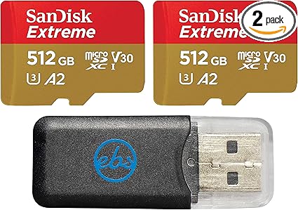 - Bundle Includes: This set contains 2 SanDisk 512GB Extreme MicroSD Memory Cards (SDSQXAV-512G-GN6MN) and 1 Everything But Stromboli MicroSDXC Card Reader.