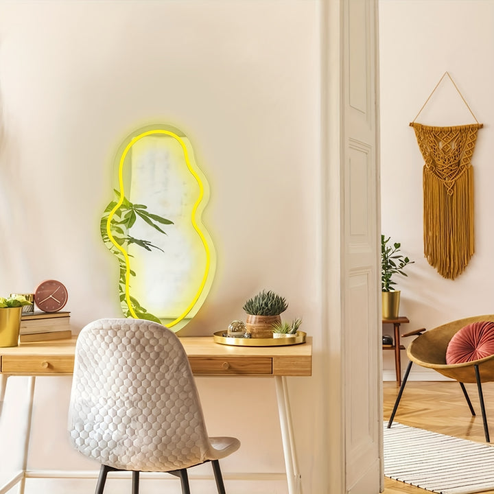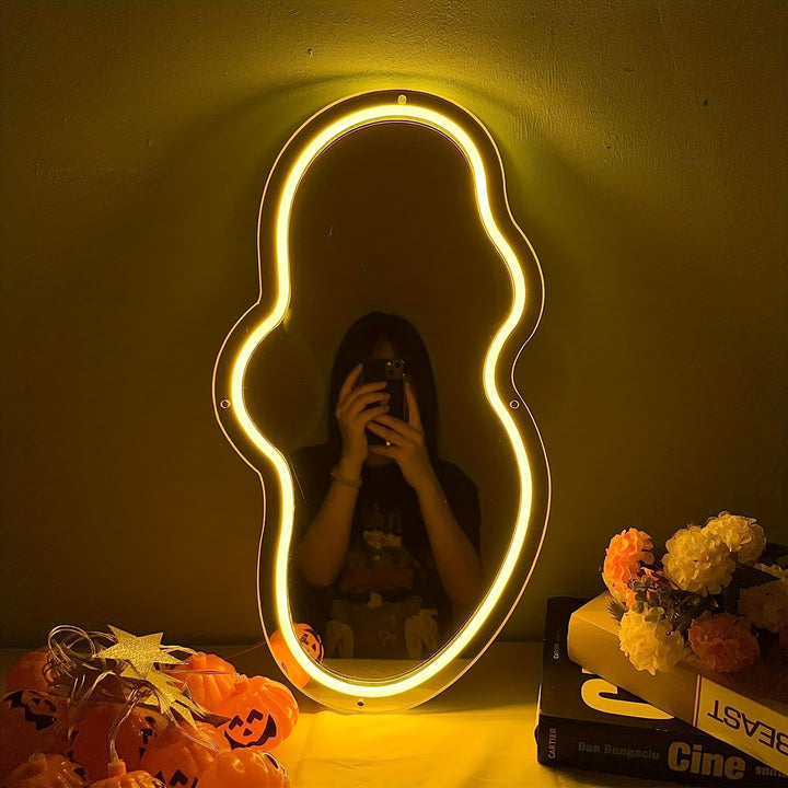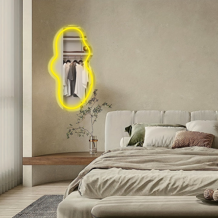 4. وظائف متعددة: بصرف النظر عن كونها قطعة ديكور على الحائط ، يمكن أن تكون علامة النيون هذه بمثابة مرآة جدار غرفة نوم أو مرآة غرفة ماكياج. وظيفتها المزدوجة تجعلها متعددة الاستخدامات وعملية.