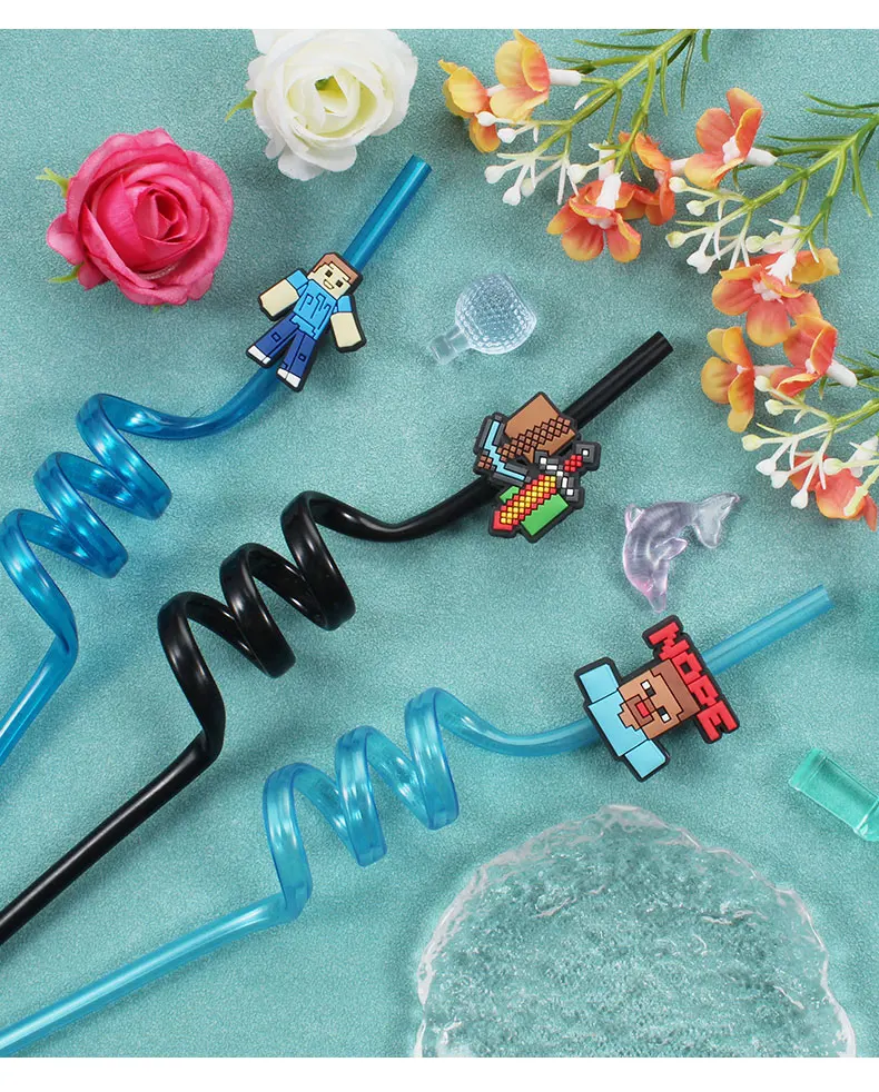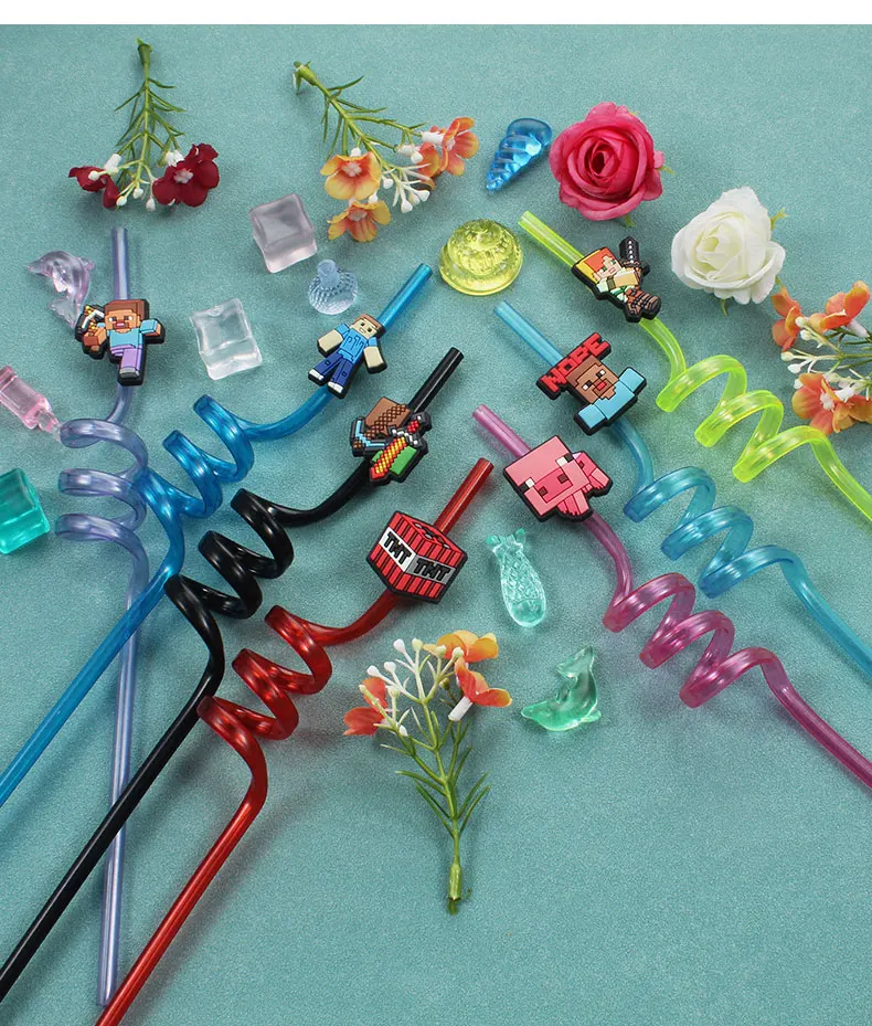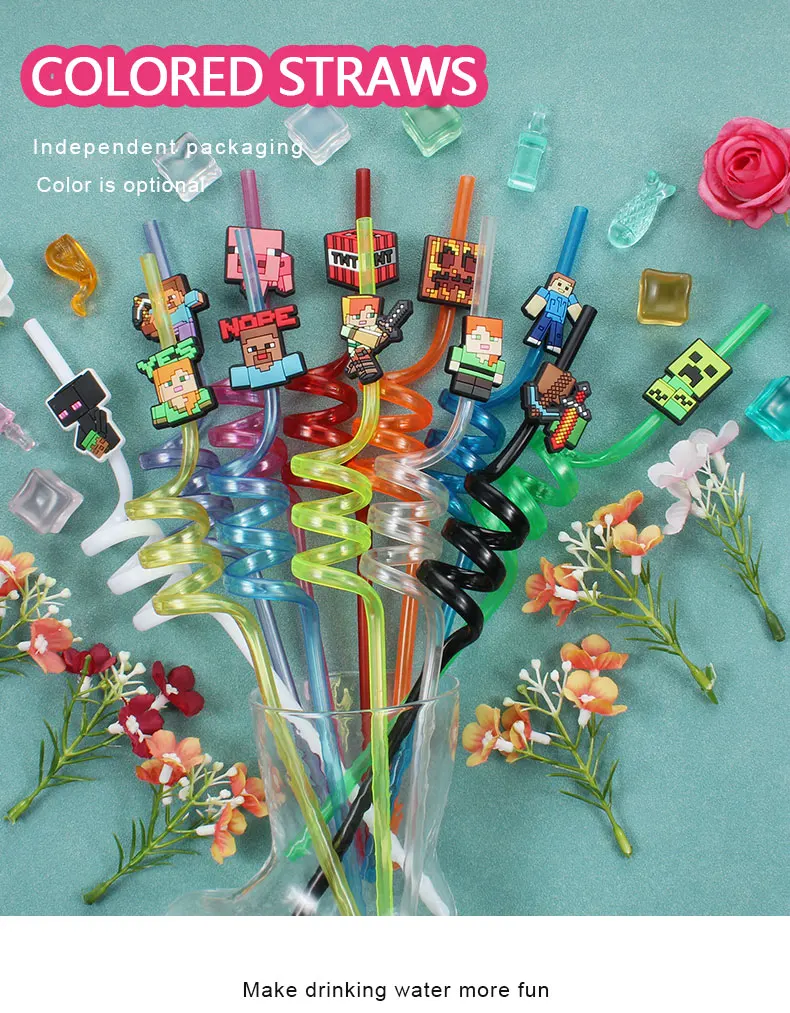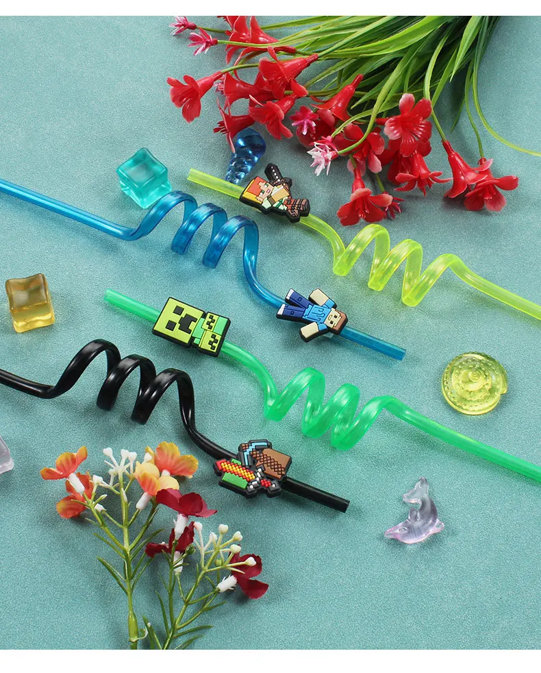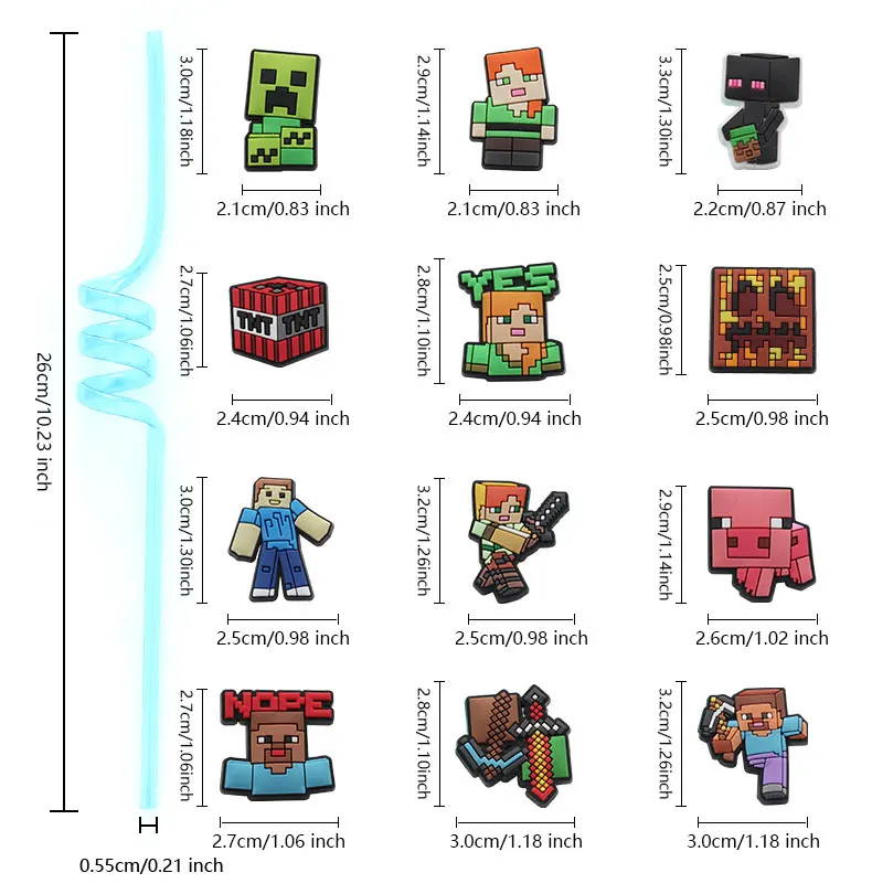12pcs Pixel Miner Game Reusable Straws NJ6837