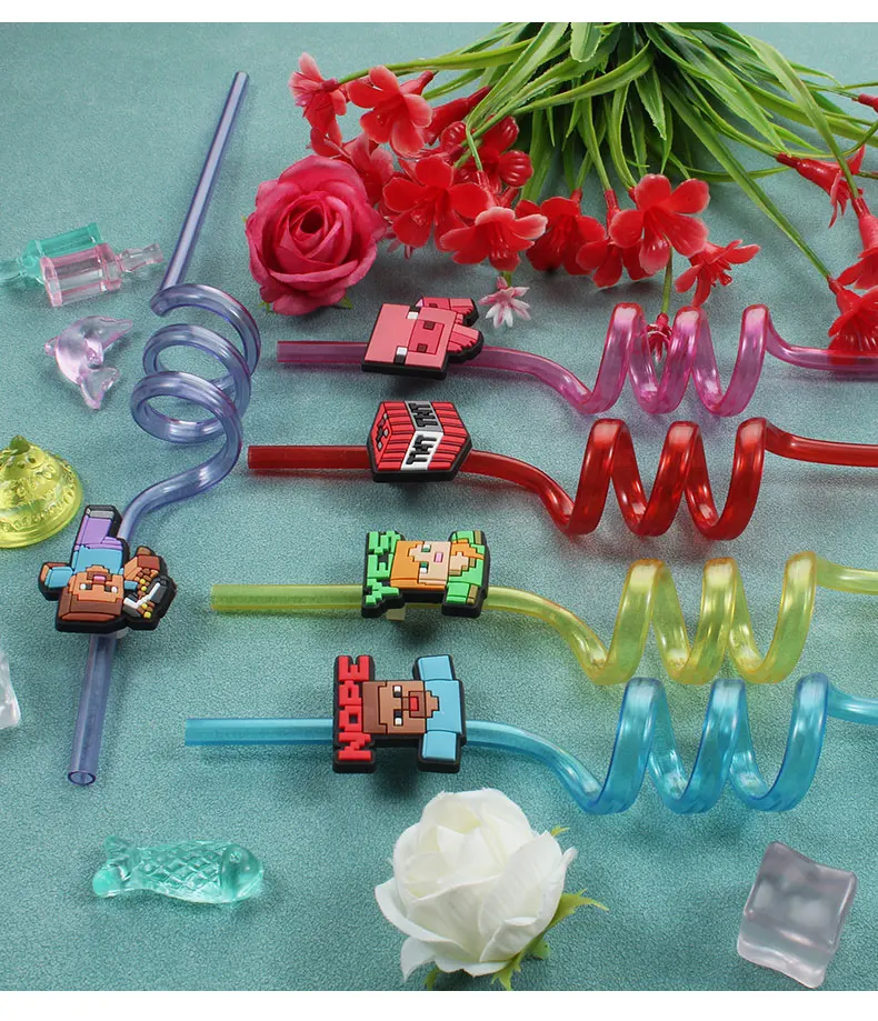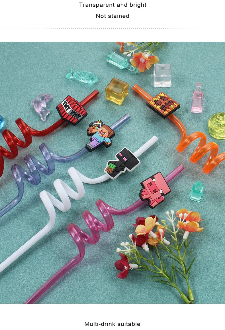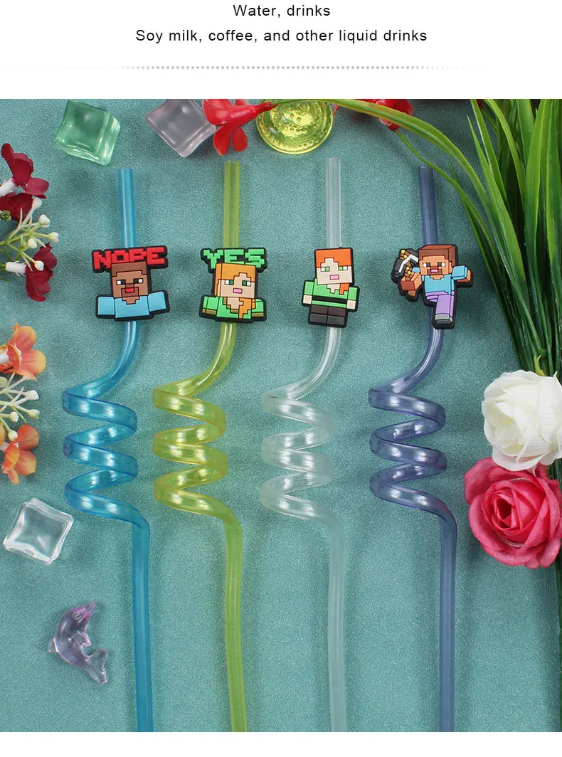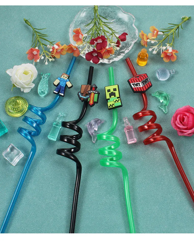 12pcs Pixel Miner Game Reusable Straws NJ6837