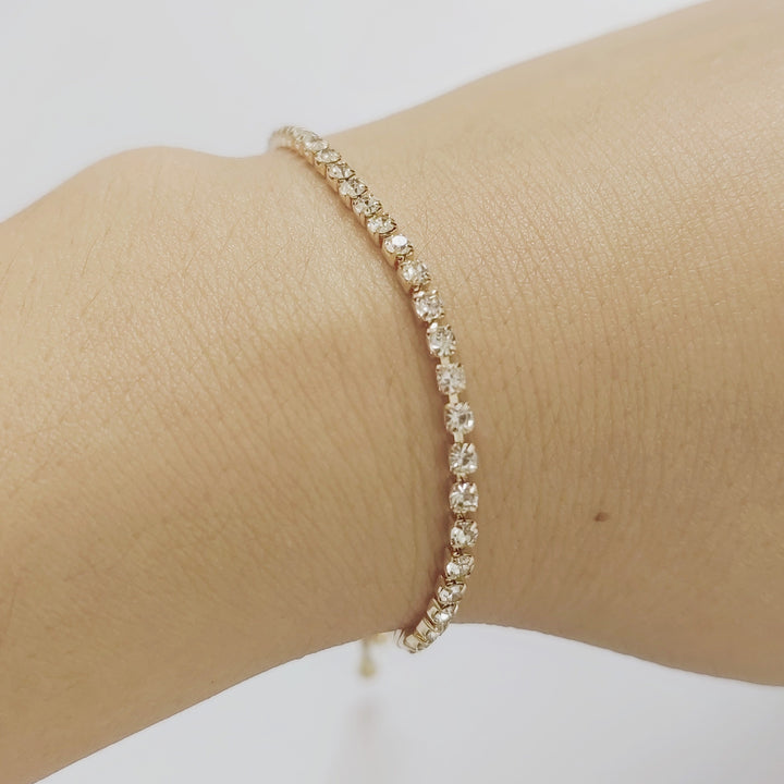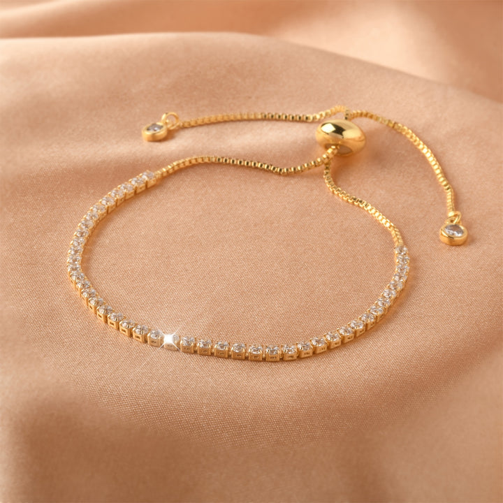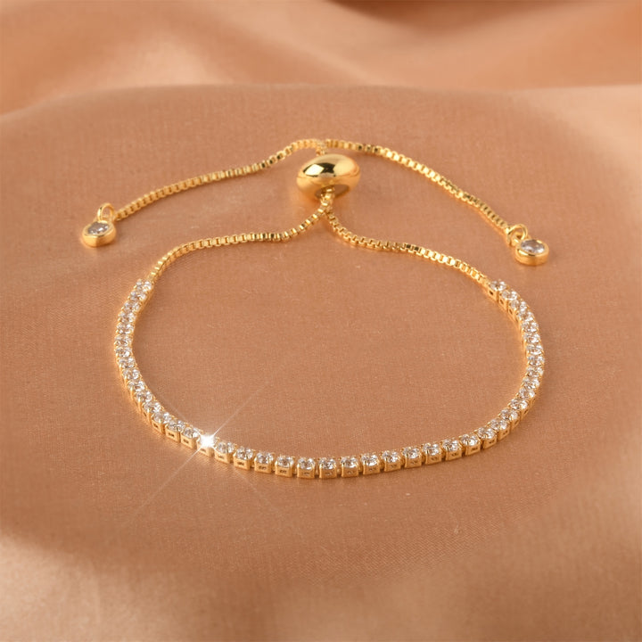 18K Gold-plated Sparkly Tennis Bracelet: This bracelet is plated with 18K gold for a luxurious look and added durability.