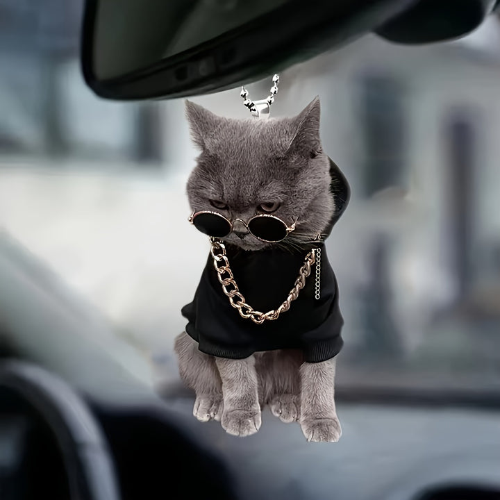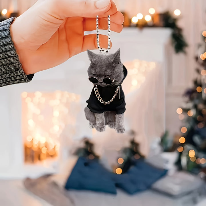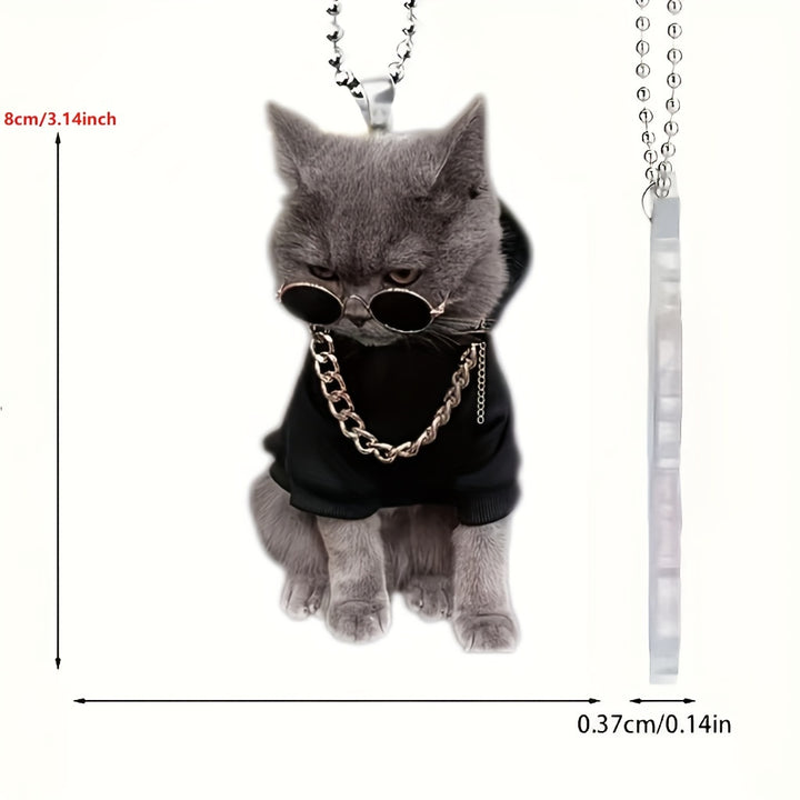 1pc 2D Acrylic Trendy And Handsome Kitten Rearview Mirror Decorative Pendant, Backpack Keychain Decorative Pendant, Home Decoration Products-12Y6