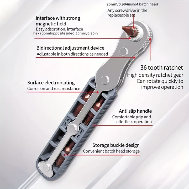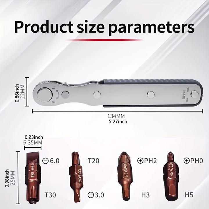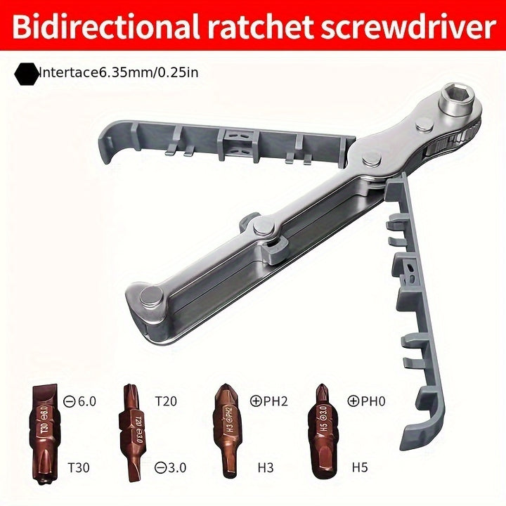 1pc, Bidirectional Ratchet Screwdriver, Portable Multifunctional Wrench Cross Slotted Screwdriver - TJRYYTQ