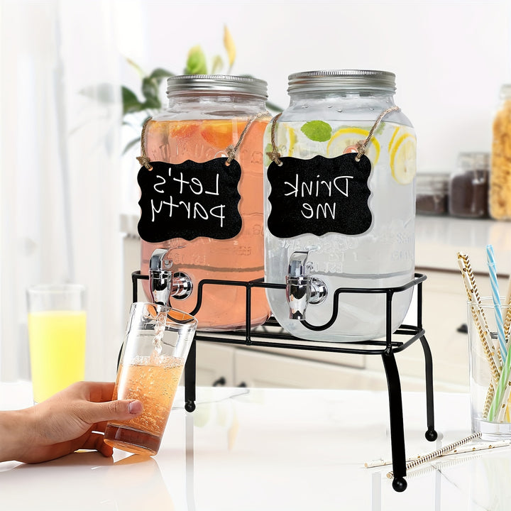 - 2 Pcs Glass Drink Dispenser: This set includes 2 glass beverage dispensers, allowing you to serve multiple drinks at once. Perfect for parties and gatherings.