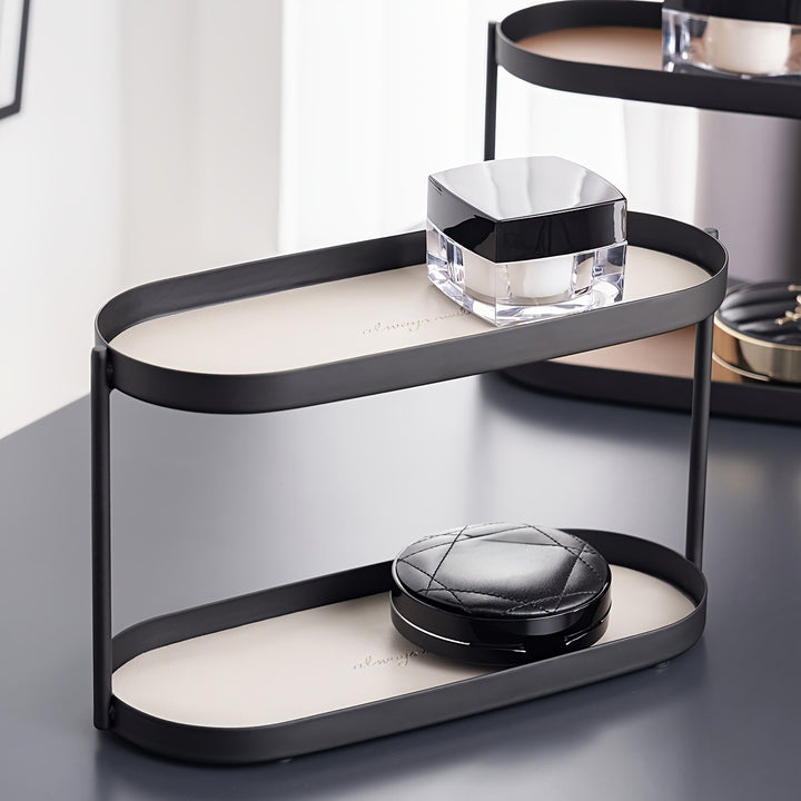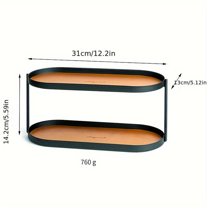 2-Tier Leather And Metal Storage Shelf For Bathroom - H2IC