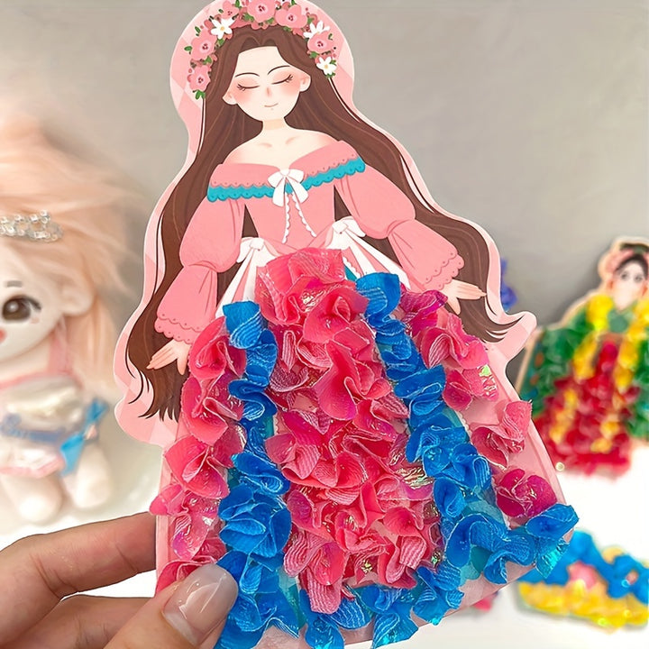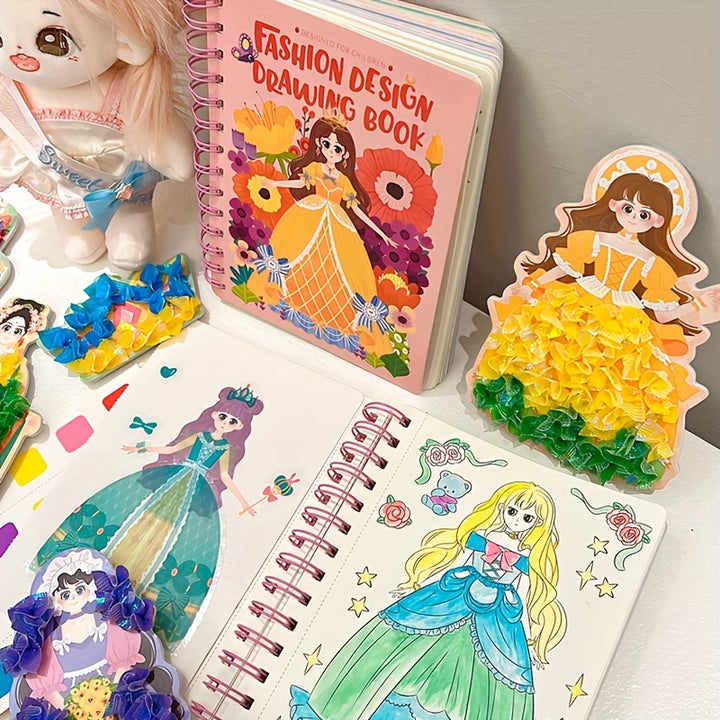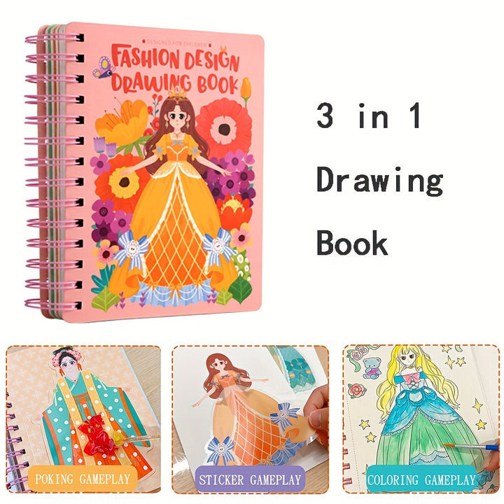 3 In 1 Drawing Book, Princess Dress-up Activity Book With Watercolor Puzzle Puncture Painting, Stickers, DIY Paper Art Craft Kit-G1NK