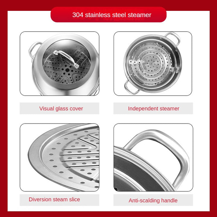 High-Quality Stainless Steel: The steamer set is made of premium stainless steel material, known for its durability and resistance to rust and corrosion. It provides excellent heat conductivity and even distribution, ensuring efficient and uniform cooking.