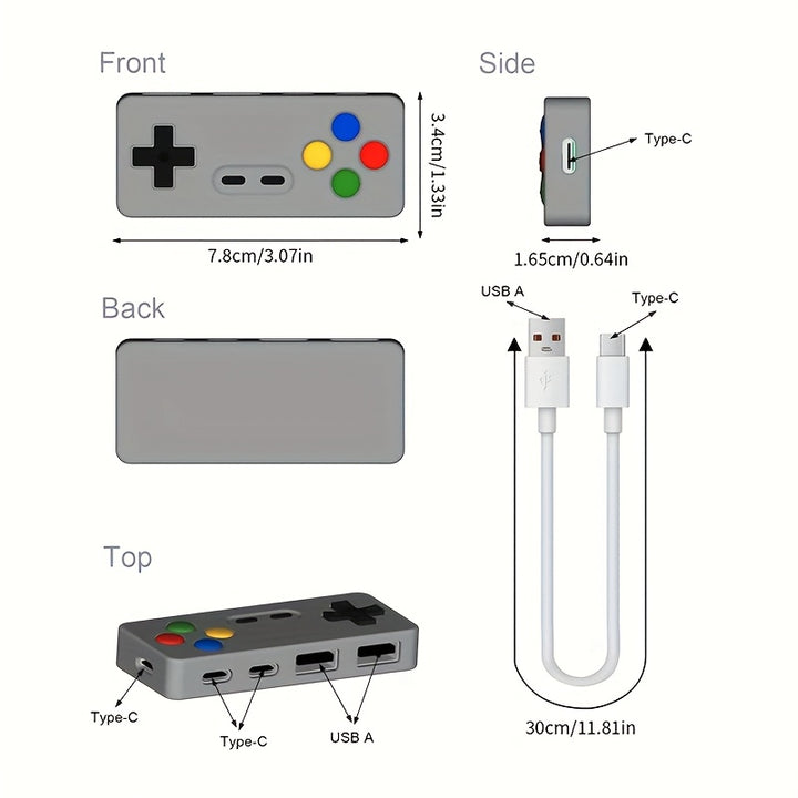 - 4-In-1 USB Expander: Expands your device's connectivity with 2 Type-C ports and 2 USB ports.