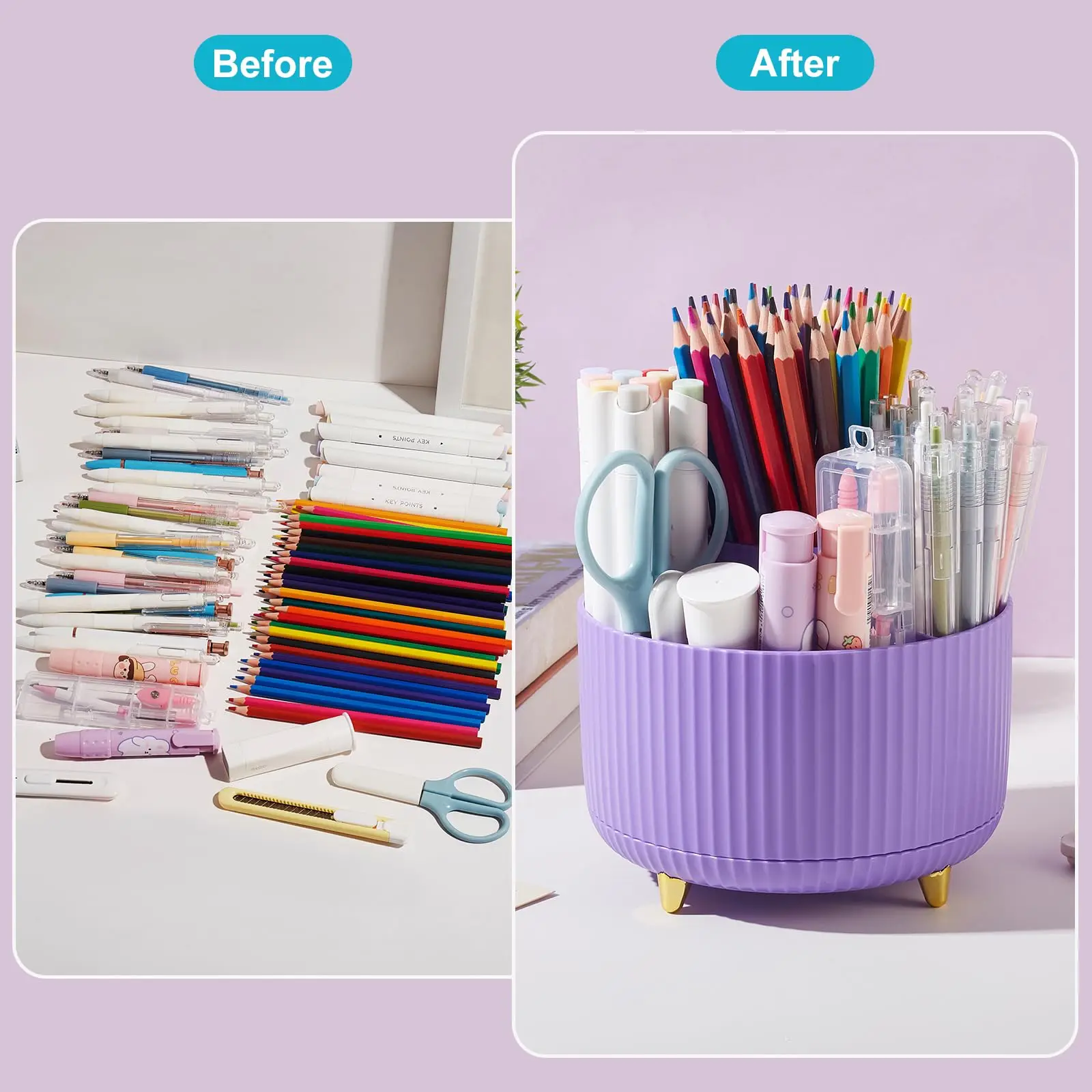 Sturdy and Durable: This rotating pencil holder is made of environmentally friendly, non-toxic ABS material that won't cause any damage. It's sturdy and strong for long-term use. The extremely smooth surface and rounded edges won't damage your belongings or yourself. Whether you're at home, at school, or at work, this pencil holder will meet your needs!