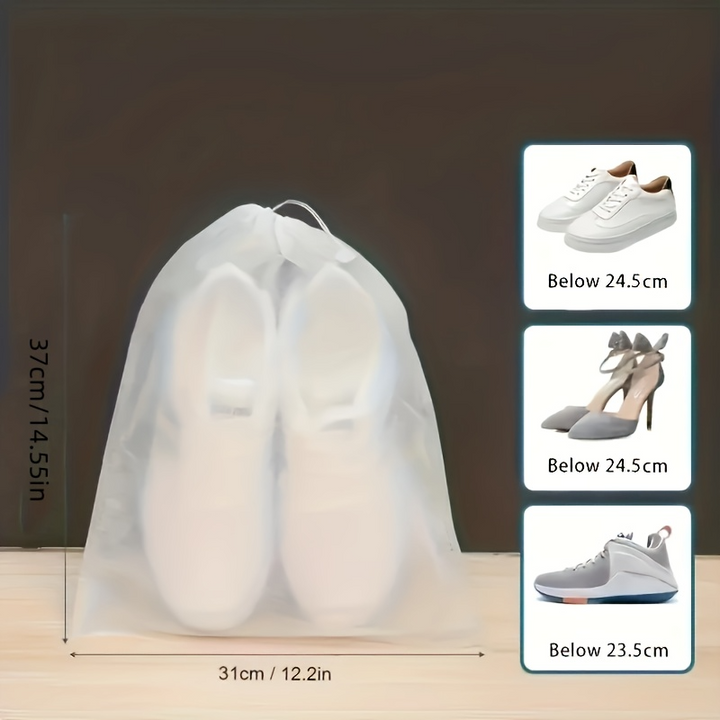 - Portable Travel Organizer: Designed with portability in mind, these pouches are perfect for keeping your shoes organized and protected during trips, vacations, or daily commutes.