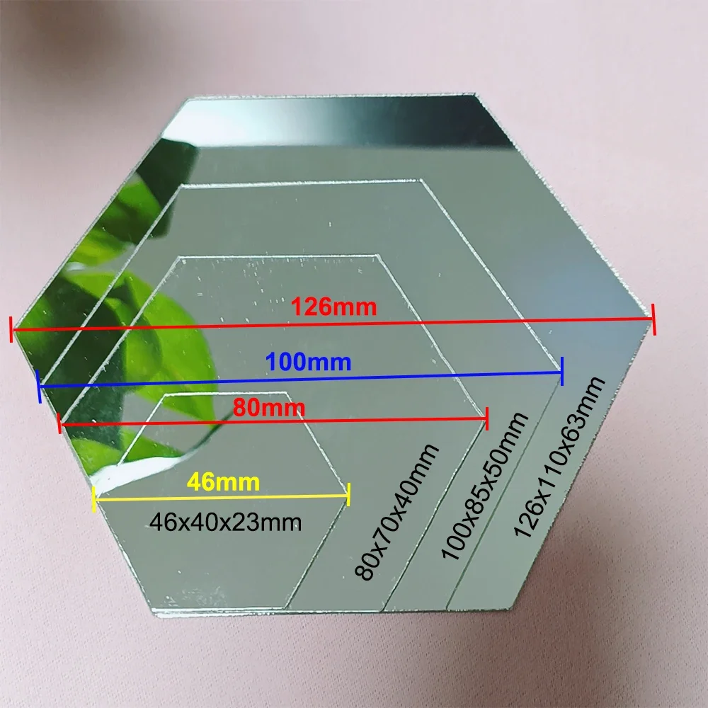 We try our best to provide the lowest price and best quality 100% brand new products to you. Your support is our greatest motivation! Your feedback and suggestions, we will accept and improve! Thank you very much! Product Details: Product name: Hexagon Mirror Sticker Material: Acrylic Size: 46*40*23mm 80*70*40mm(The third number is the side length)