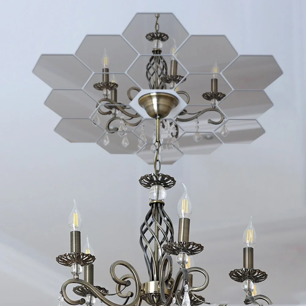 6/12pc Hexagon Mirror Wall Stickers 3D DIY Acrylic Mirror Sticker Self Adhesive Decals Removable Living Room Bathroom Home Decor