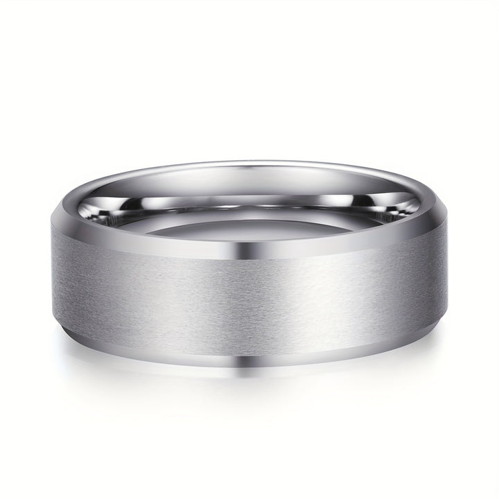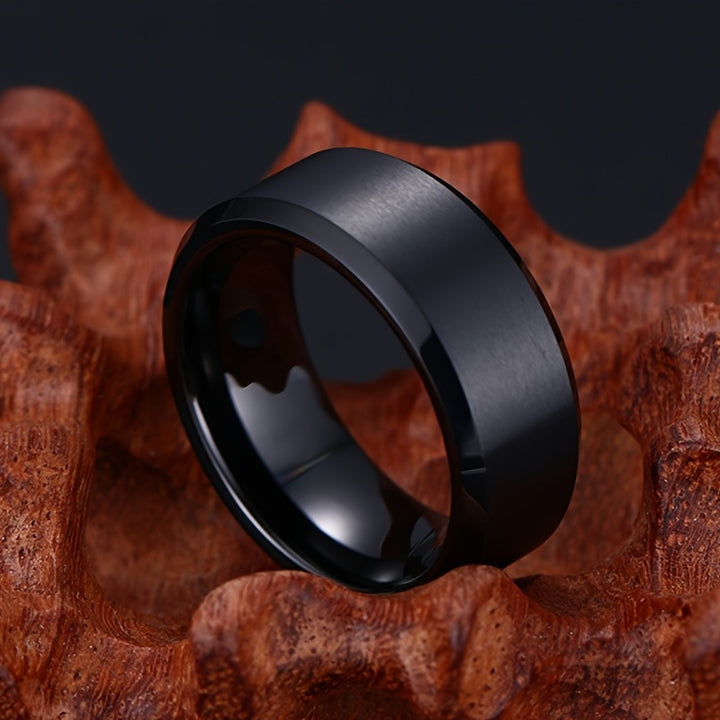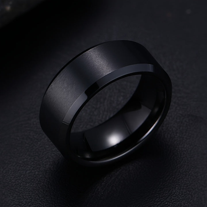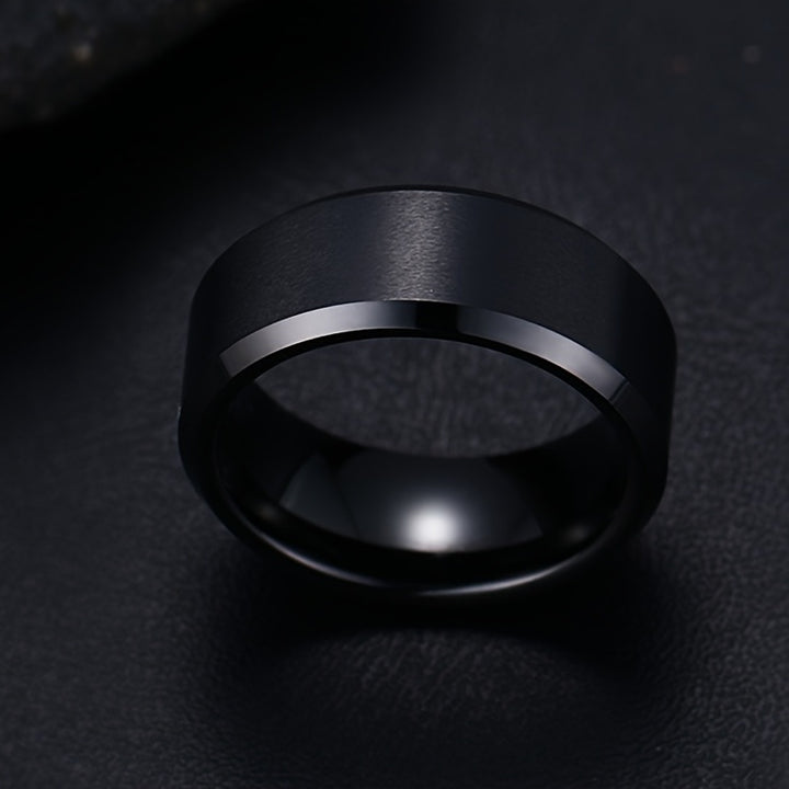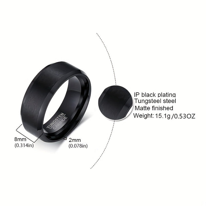 This 8mm Beveled Matte Finish Fashion Engagement Wedding Band Black Tungsten Carbide Ring is a stylish and durable choice for both men and women. The matte finish adds a modern touch, while the beveled design gives it a sleek look. Made from black tungsten carbide, this ring is scratch-resistant and hypoallergenic, making it a practical option for daily wear. Whether you're looking for an engagement ring or a fashionable accessory, this ring is sure to make a statement.