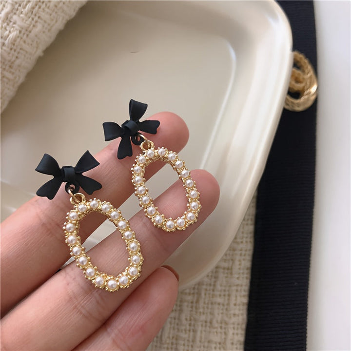 Black Bow Faux Pearl Earrings