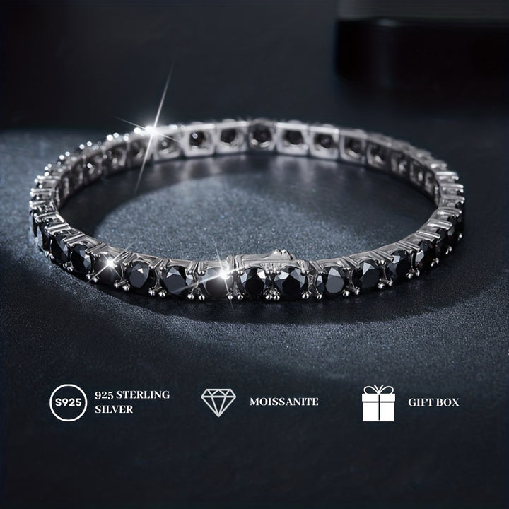 Enhance your overall look with this stunning 1pc Black Moissanite S925 Sterling Silver Simple Tennis Bracelet. Made from high-quality S925 sterling silver, it is not only durable but also adds elegance to your wrist. The bracelet features a classic D color VVS1 clarity moissanite stone, which sparkles brilliantly and adds a touch of sophistication.
