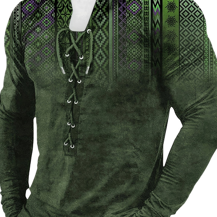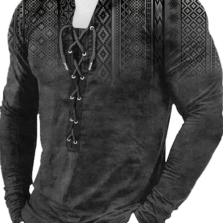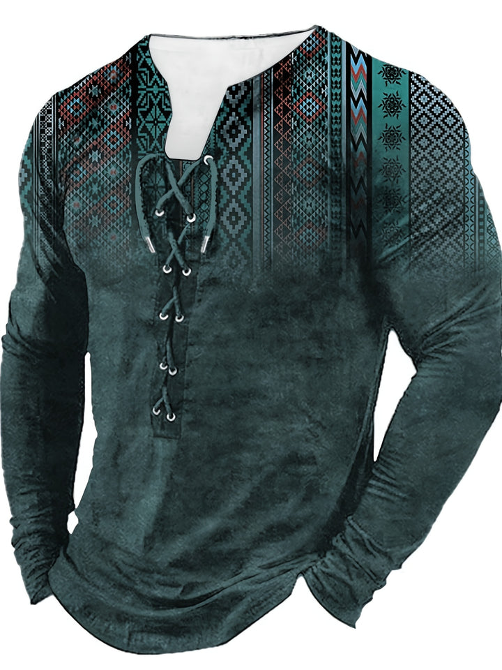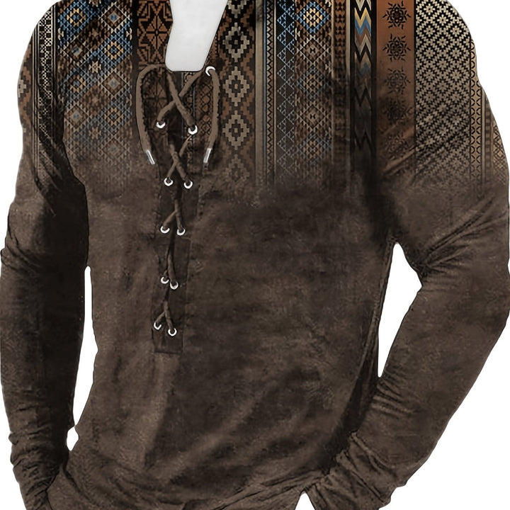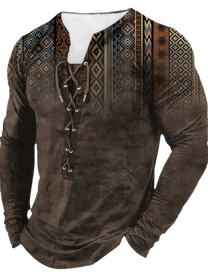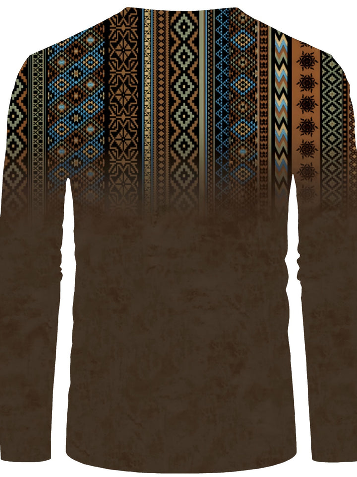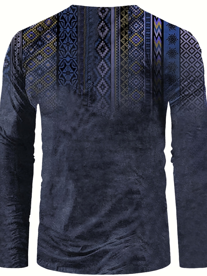 Bohemian Style Men's Vintage Long Sleeve Henley Tee - Spring/Fall Gift - TJR3V2X
