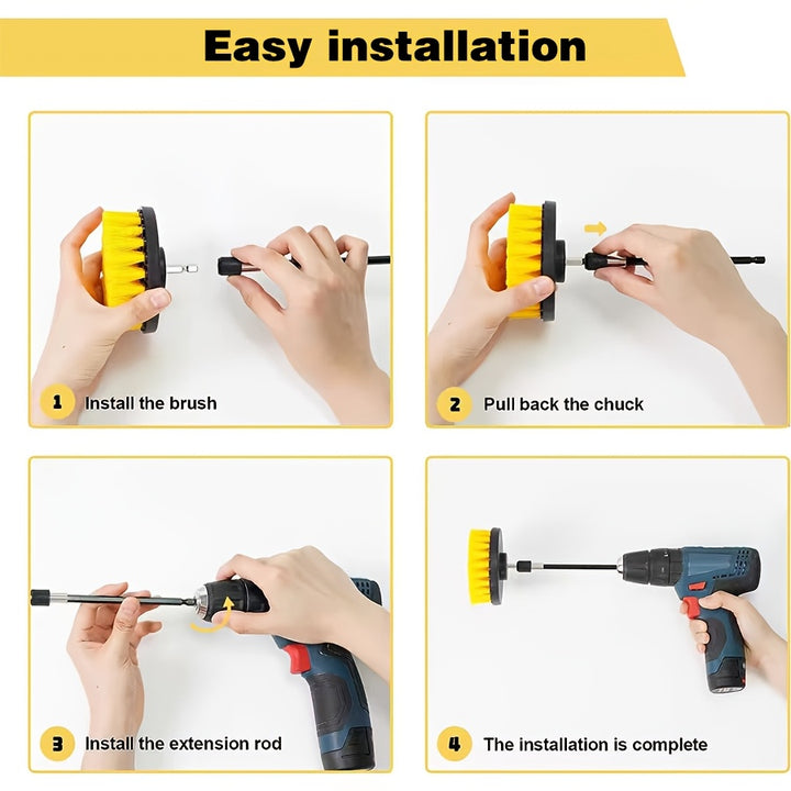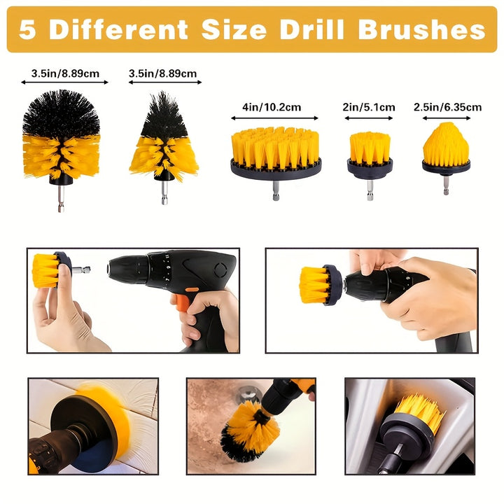 Power Drill Attachments: The set comes with drill attachments that enhance your cleaning efficiency. Simply connect them to your standard power drill and enjoy effortless, high-power scrubbing action which makes quick work of tough grime and dirt.