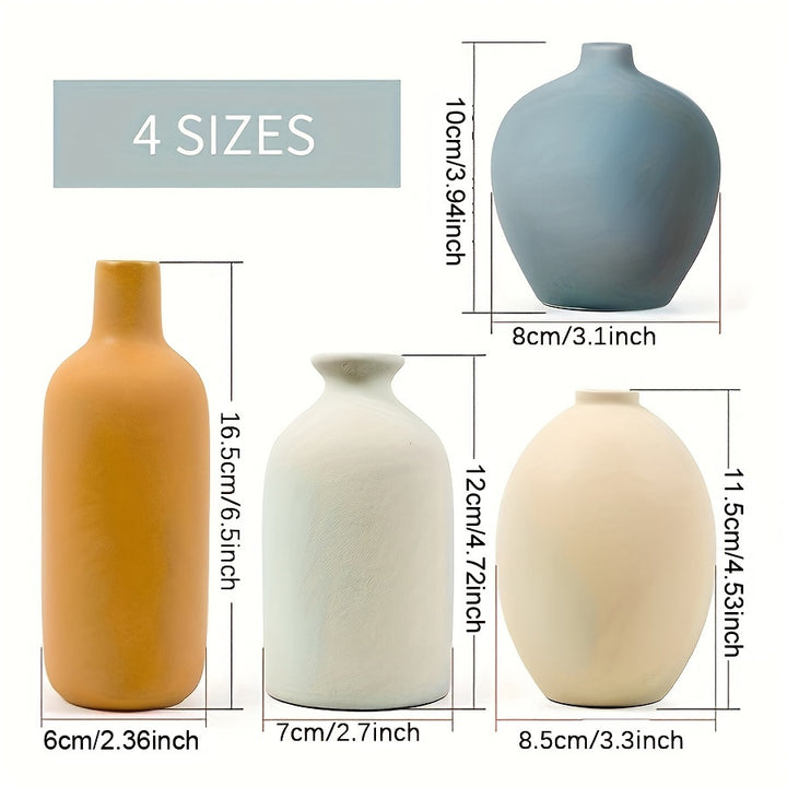 Minimalist Design: This set of 4 ceramic vases boasts a minimalist style, ideal for various home decor themes including country home decor, modern farmhouse, and more. The sleek and simple design ensures they blend seamlessly with any interior setting.