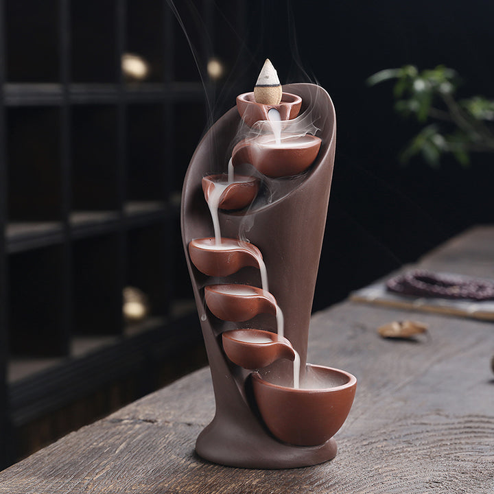 Ceramic Waterfall Incense Burner: This incense burner is made of high-quality ceramic material, ensuring durability and long-lasting use.