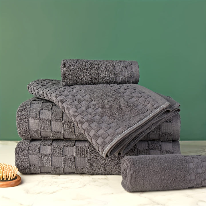 Set includes 2 bath towels, 2 hand towels, and 2 washcloths
